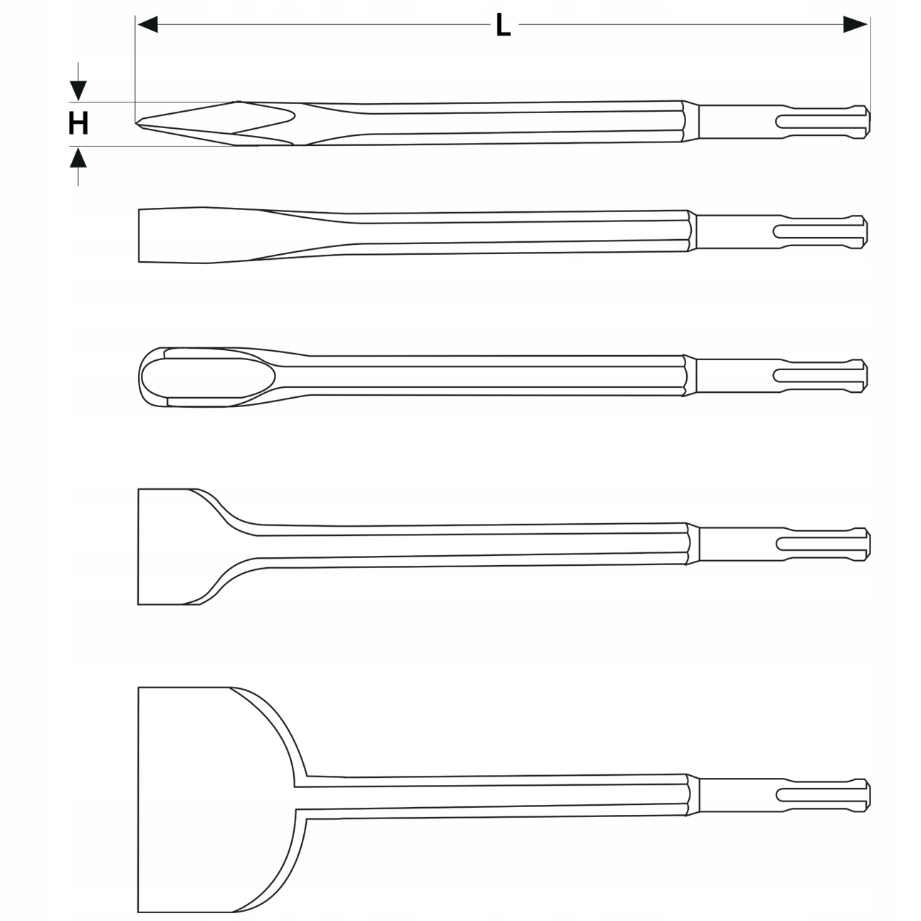 Набір зубил SDS+ — це спеціально підібраний набір інструментів, який використовується для свердління отворів у бетоні, цеглі та камені, а також для різання, довбання та пробивання бетонних конструкцій. Зубила спеціально розроблені для свердління різноманітних отворів від плоских наскрізних каналів та інших отворів, особливо тих, де потрібна точність у розмірах.