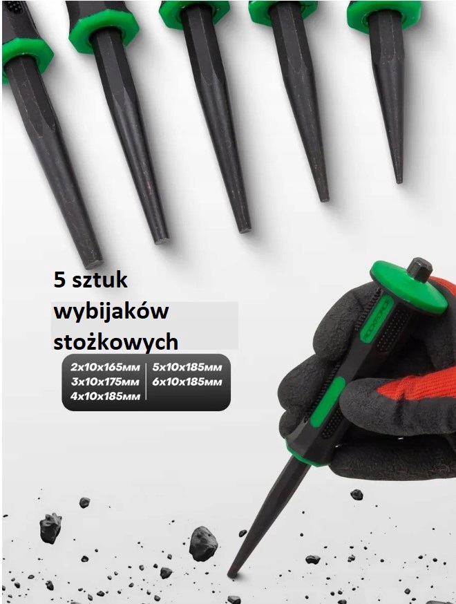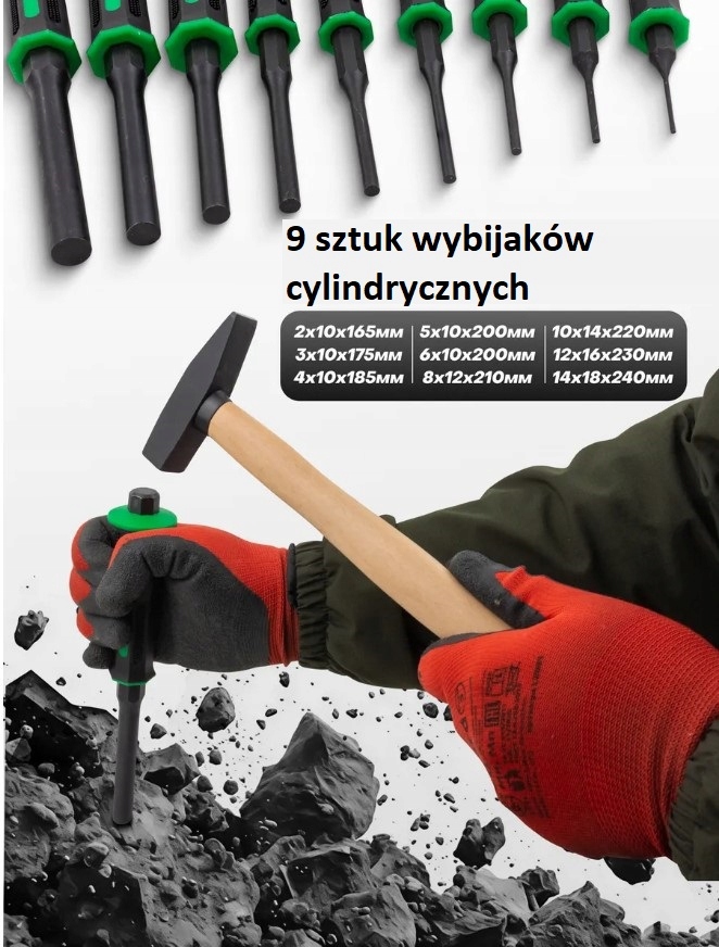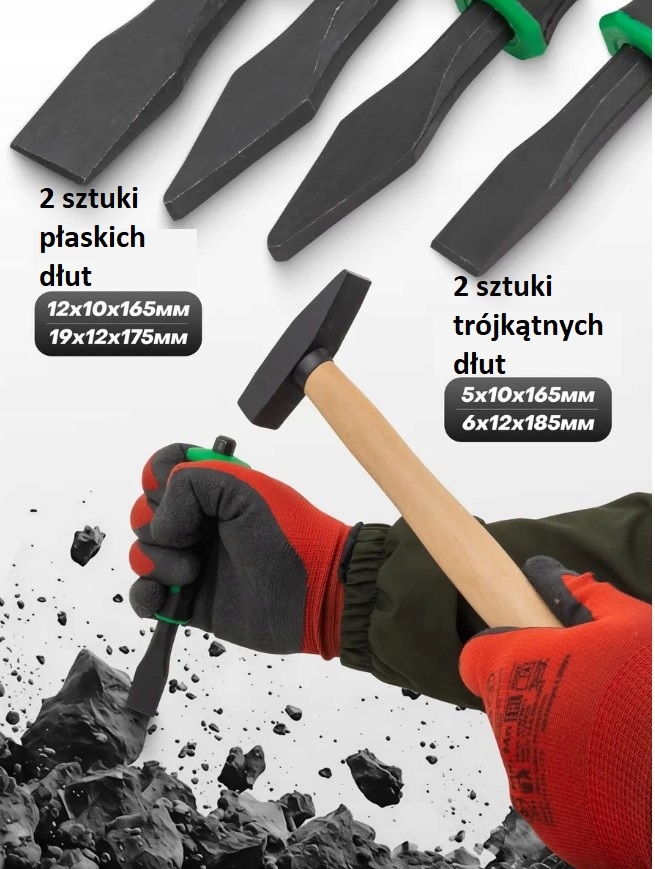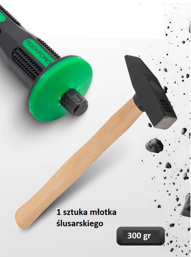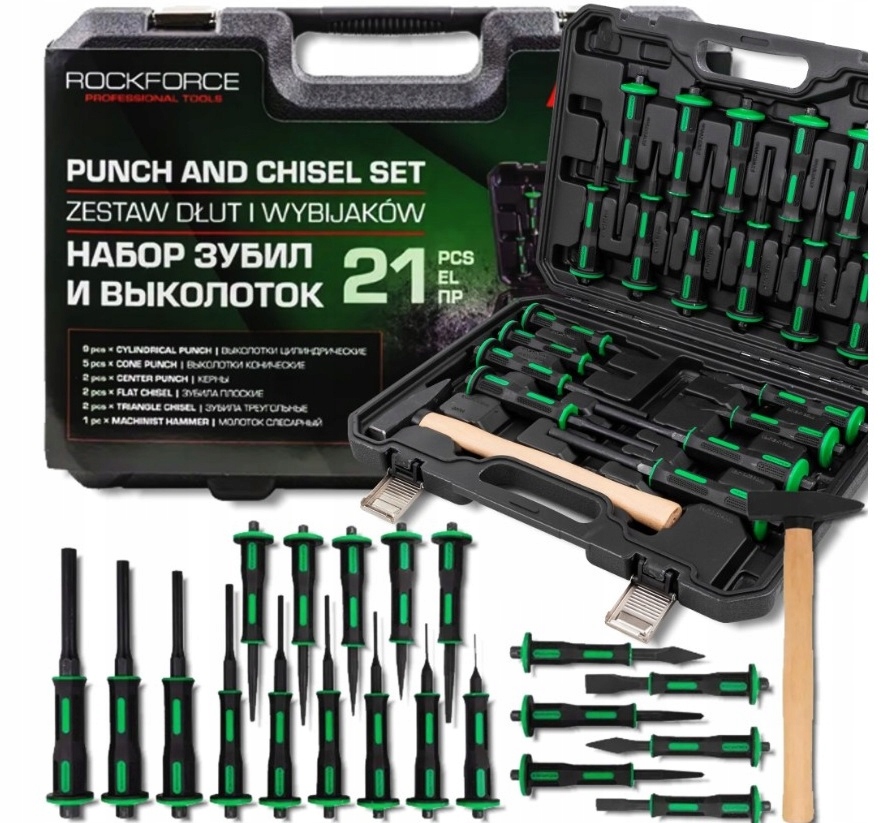 - Це набір із 21 інструменту, до складу якого входять зубила та пробійники, а також слюсарний молоток.