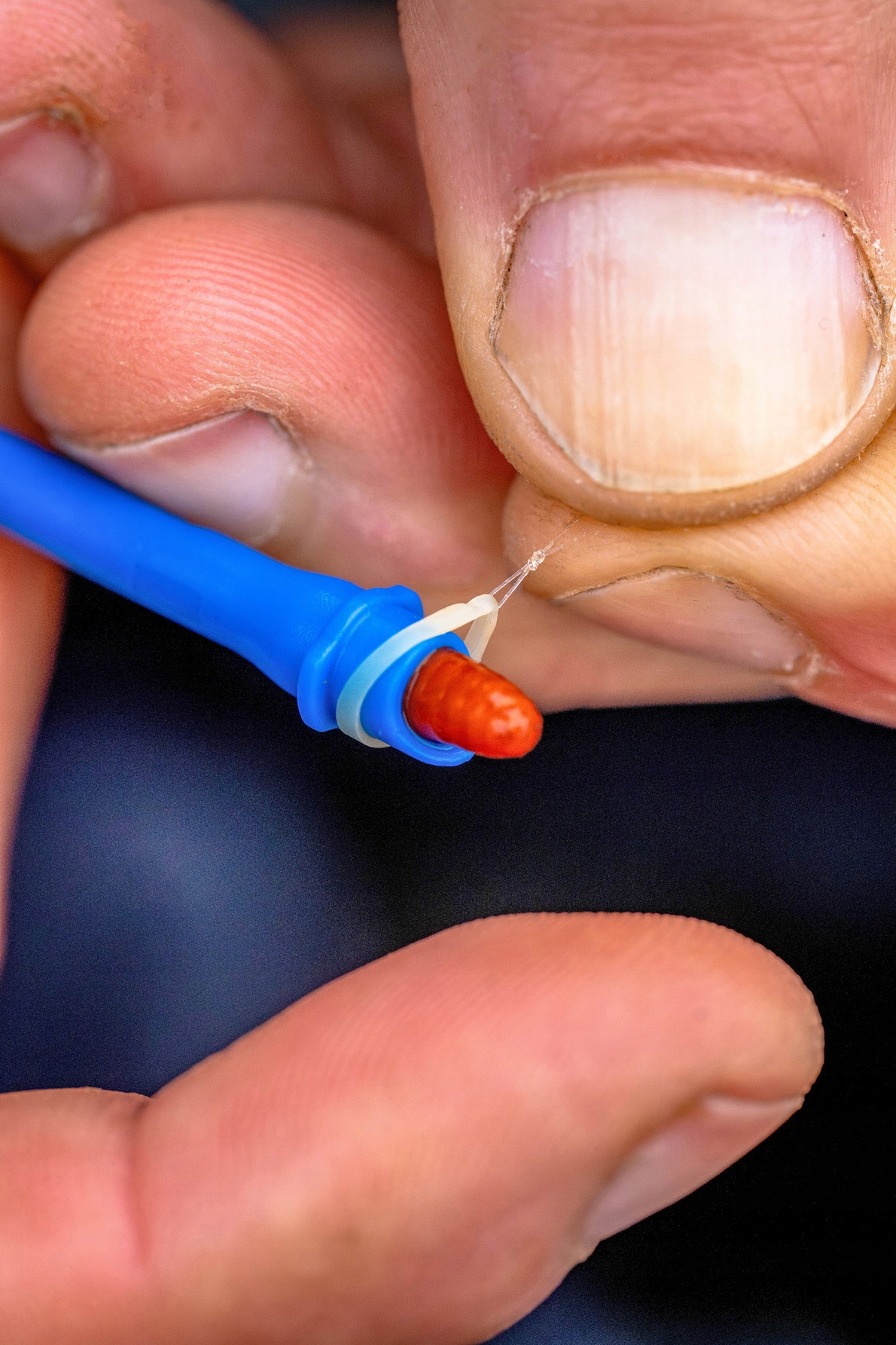 аплікатор для гумки - спеціально профільована порожнина дозволяє легко розміщувати приманки, такі як кастери або гранули з діаметром 4 мм, що полегшує швидке та точне надягати еластичну смугу для приманки.