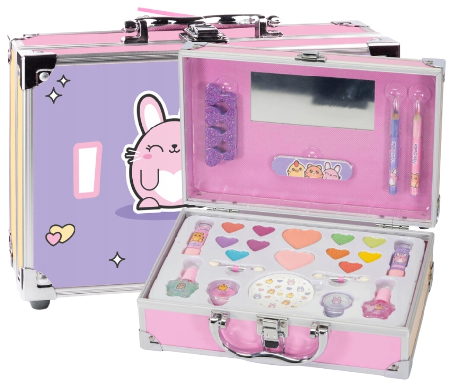 Набір косметики для макіяжу у валізі, окрім прикраси дитячої кімнати, містить усе необхідне для нанесення макіяжу принцеси.
