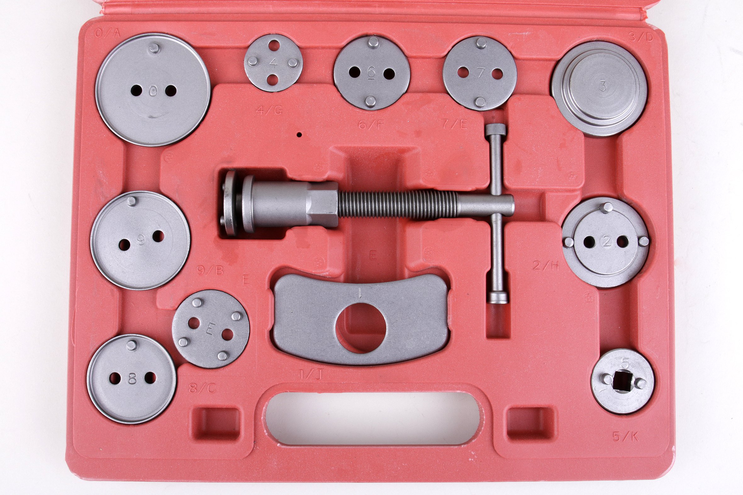 Професійний набір з 12 предметів для витягування/віджиму поршнів у циліндрах гальмівної системи, необхідний при ремонті автомобілів з дисковими гальмами. Набір призначений для кожної автомайстерні, де він допомагає прискорити обслуговування гальмівних систем. Набір підходить для більшості автомобілів на ринку, що робить його надзвичайно універсальним.