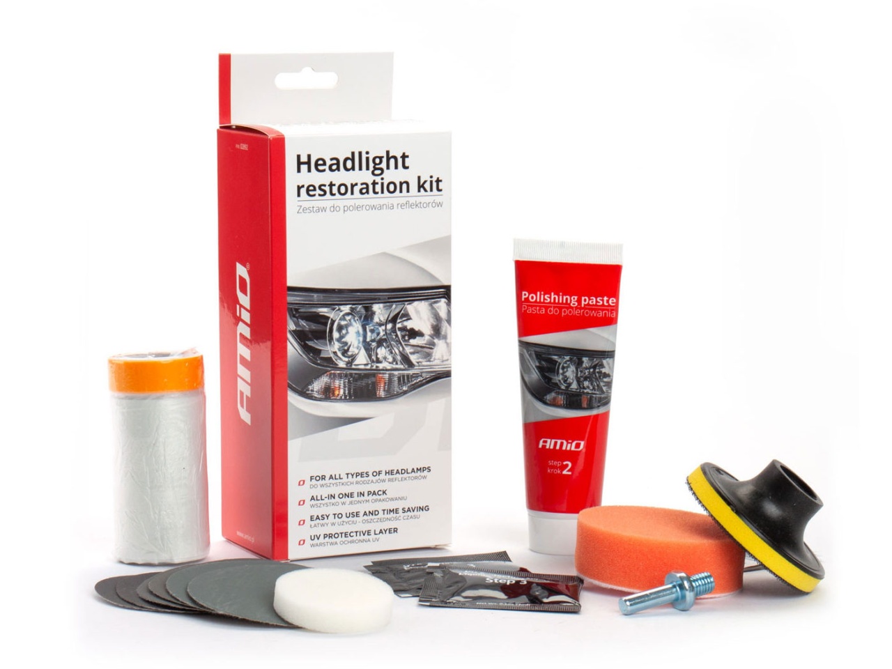 Набір, призначений для відновлення первісного блиску дуже тьмяних, пожовклих фар. Комплект призначений для поліпшення якості фар. 3 прості кроки: стирання, полірування, захист. Завдяки використанню цього комплекту немає необхідності міняти фари на нові. Простий у використанні. У комплект не входить електрополірувальник. Призначений для ремонту двох фар.