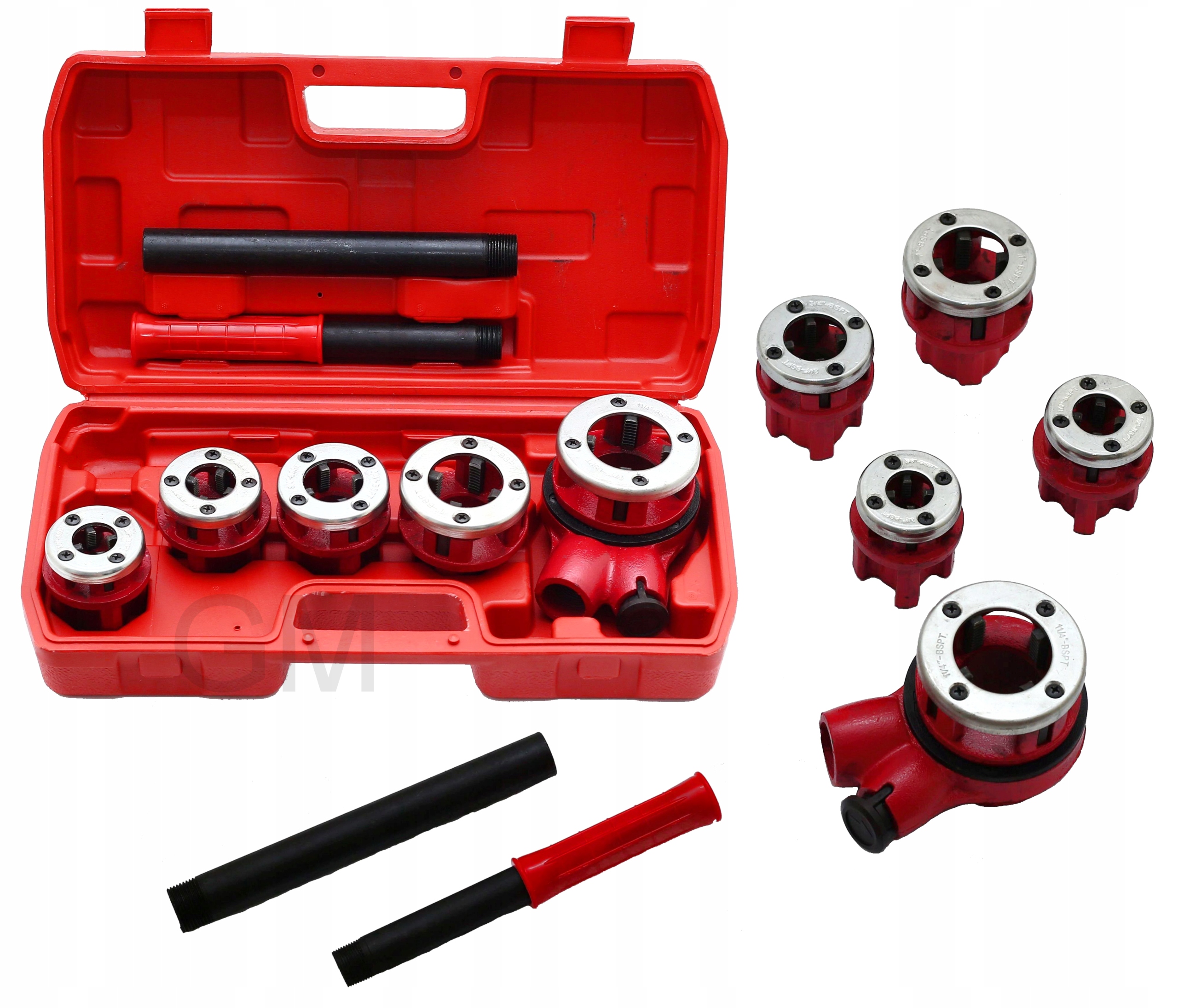 Гідравлічний трубопрорізувач у комплекті з 6 шт. вмирає. Пристрій використовується для нарізання різьблення труб і фітингів. Його можна використовувати як під час ремонту, так і під час будівництва. Зуби нарізного пристрою виготовлені з легованої сталі CrV.