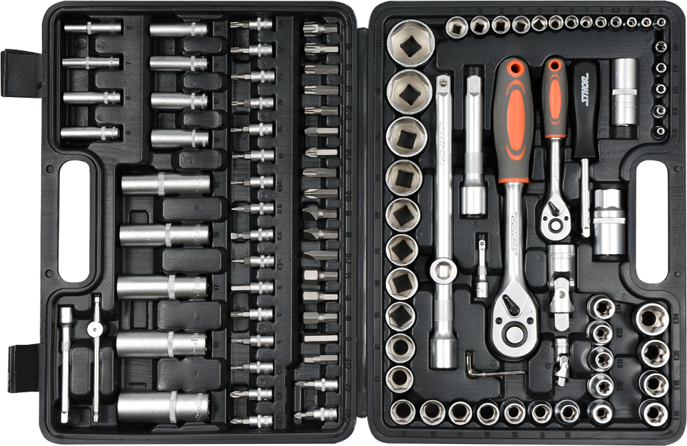 Набір інструментів STHOR складається з 108 елементів, розміщених у зручному пластиковому кейсі. Інструменти виготовлені з матеріалів, що забезпечують їх надійність.