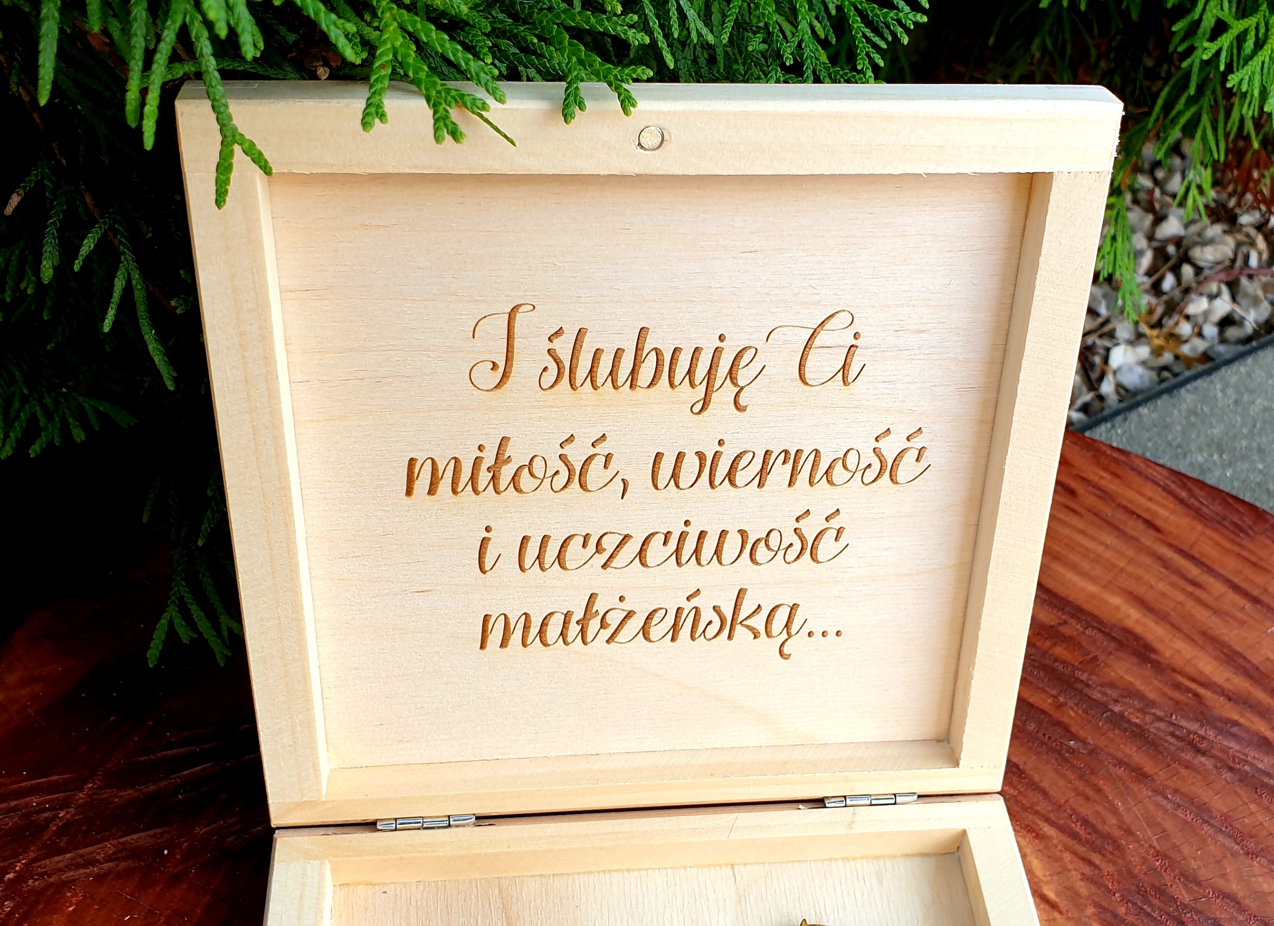 Дерев'яна скринька для обручок з гравіюванням