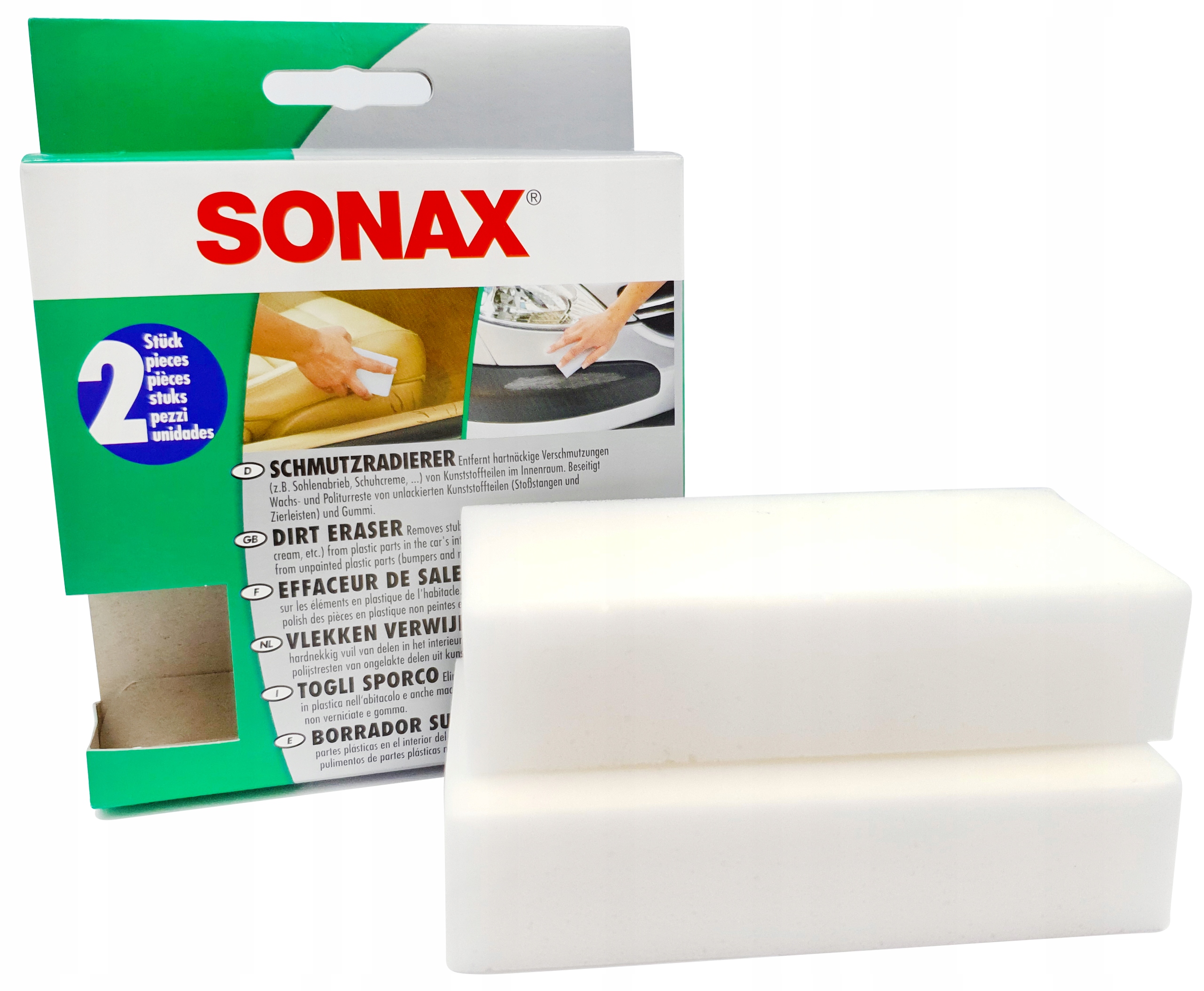 Спеціальна губка з мікропорами для видалення стійких забруднень з пластикових елементів салону автомобіль (наприклад, сліди від шин або крему для взуття).