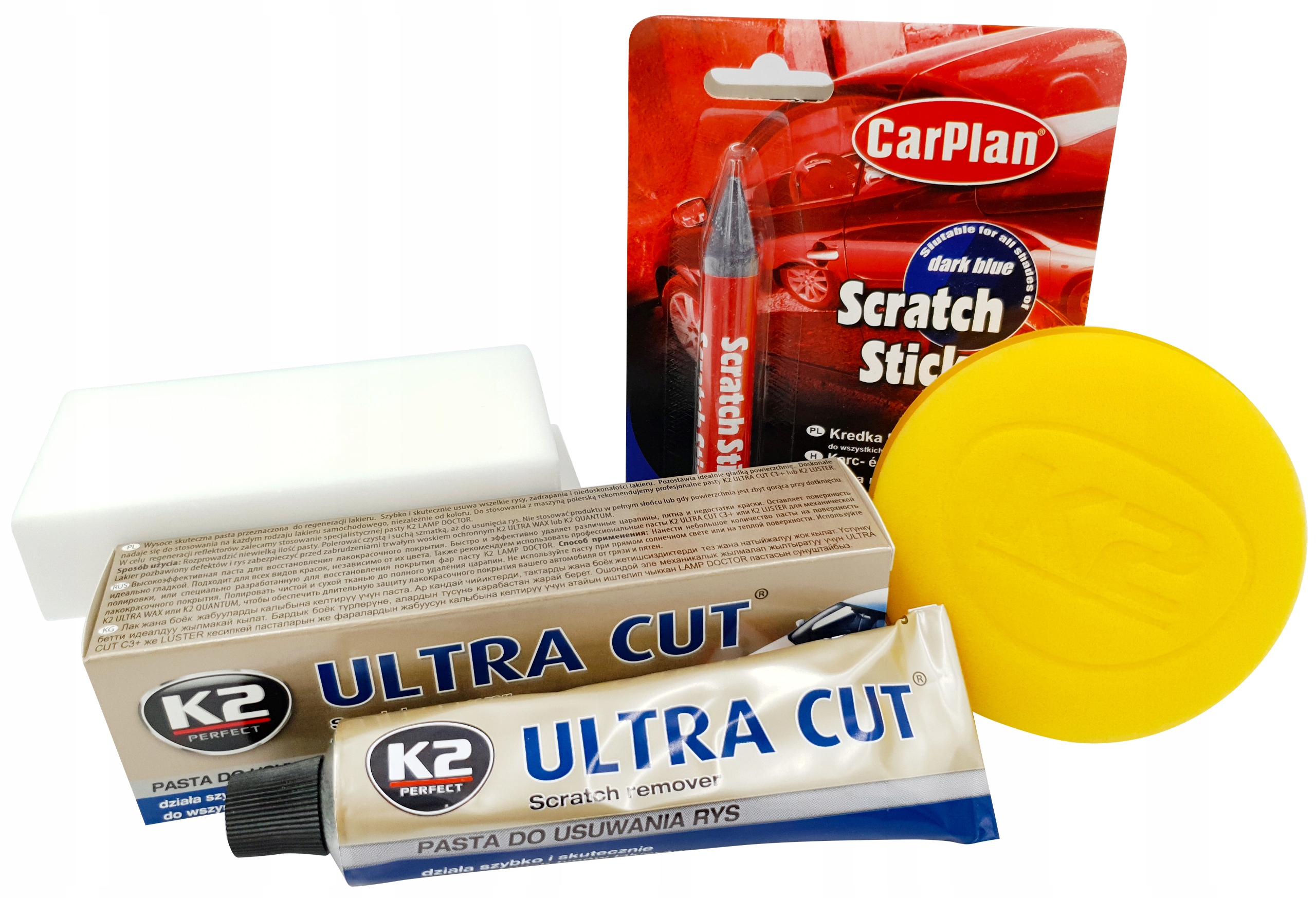 Якщо ви хочете використовувати її з полірувальною машиною для видалення дуже великих подряпин, ми рекомендуємо використовувати полірувальну пасту K2 ULTRA CUT C3+ або полірувальну систему K2 з поліруванням K2 LUSTER пасти.
