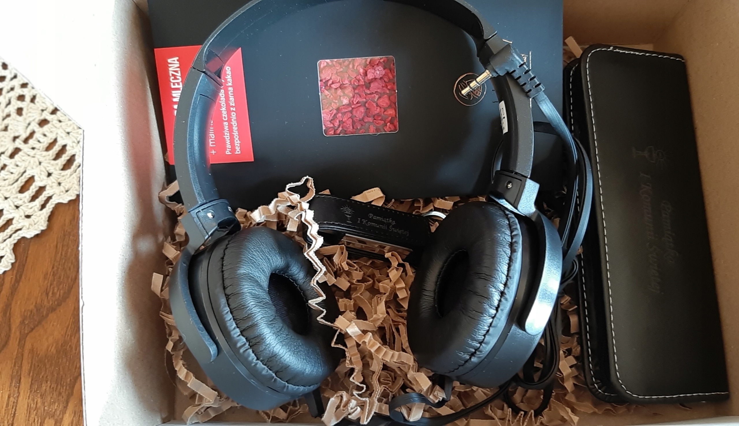 2) Складні накладні навушники, які регулюються по довжині, дуже хороша якість звуку та зручні; довжина кабелю: 1,2 м.
