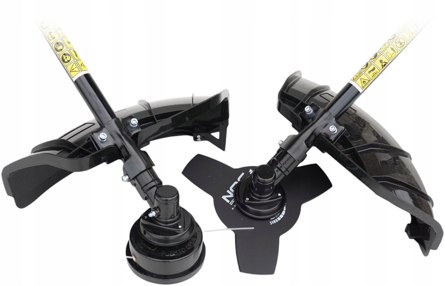 - Обладнаний ріжучим диском і тримерною головкою