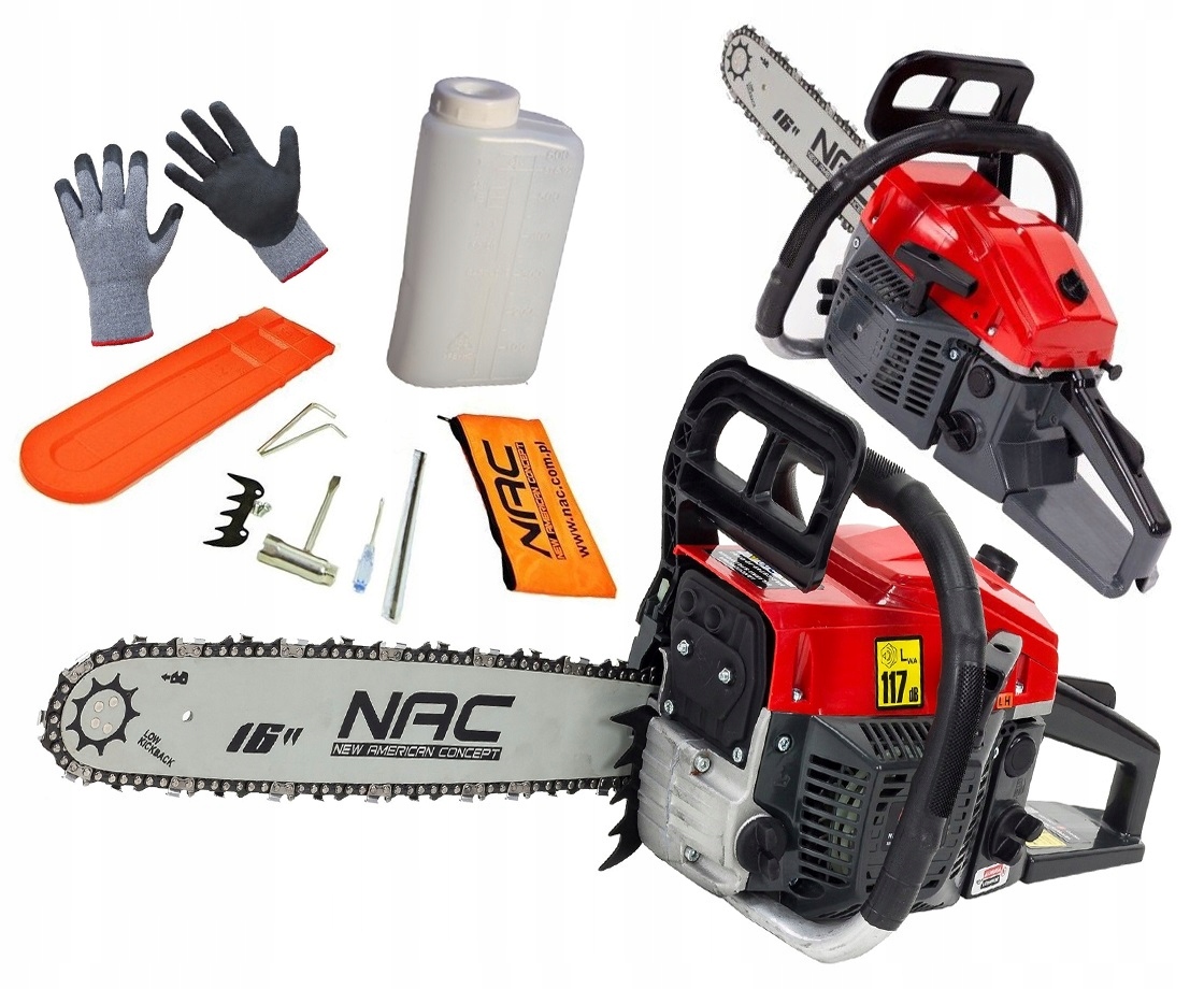 - Бензинова бензопила NAC - це сучасний пристрій, оснащений потужним двотактним двигуном об'ємом 45 см³ і потужністю 2,45 к.с.