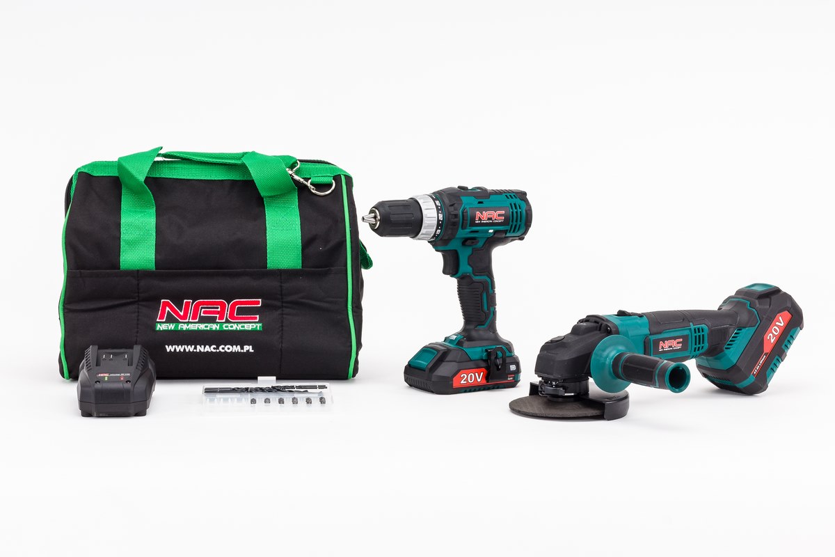 NAC кутова шліфувальна машина + 20V викрутка + 2aku + сумка