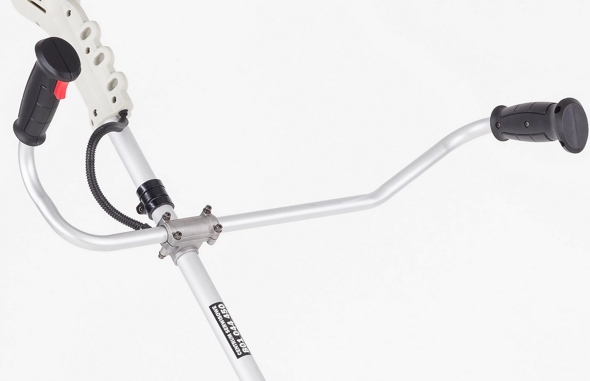 Елементи керування розміщені на ергономічній дворучній V-подібній ручці гарантують оптимальний контроль над пристроєм у будь-якій ситуації та забезпечують комфортне косіння навіть дуже великих поверхонь.