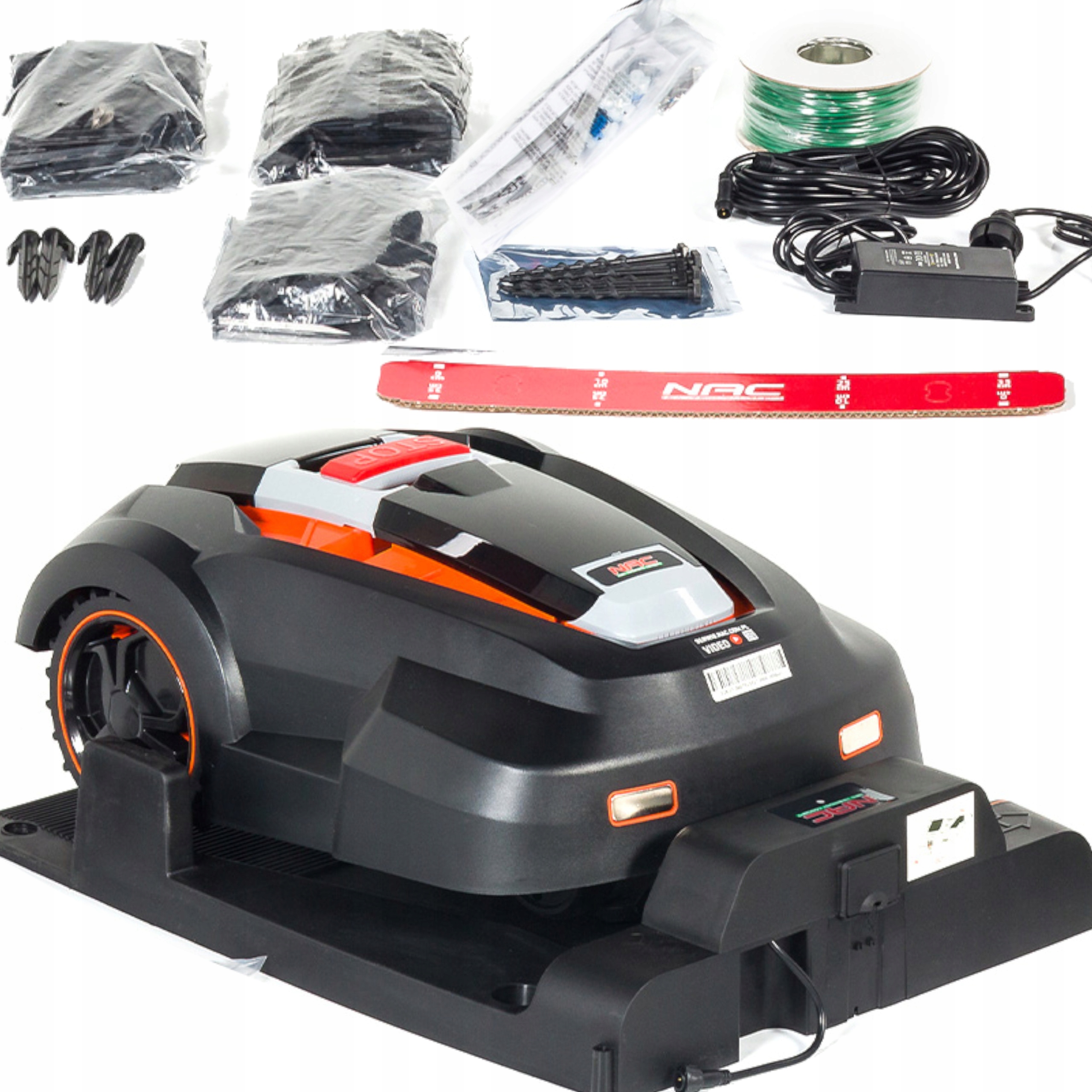 Встановлення роботизованої косарки NAC дуже простий процес. Просто розташуйте док-станцію правильно, потім оточіть скошену ділянку обмежувальним дротом, закріпивши його на газоні спеціальними шпильками. Останнім кроком є налаштування поверхні різання, і все готово.