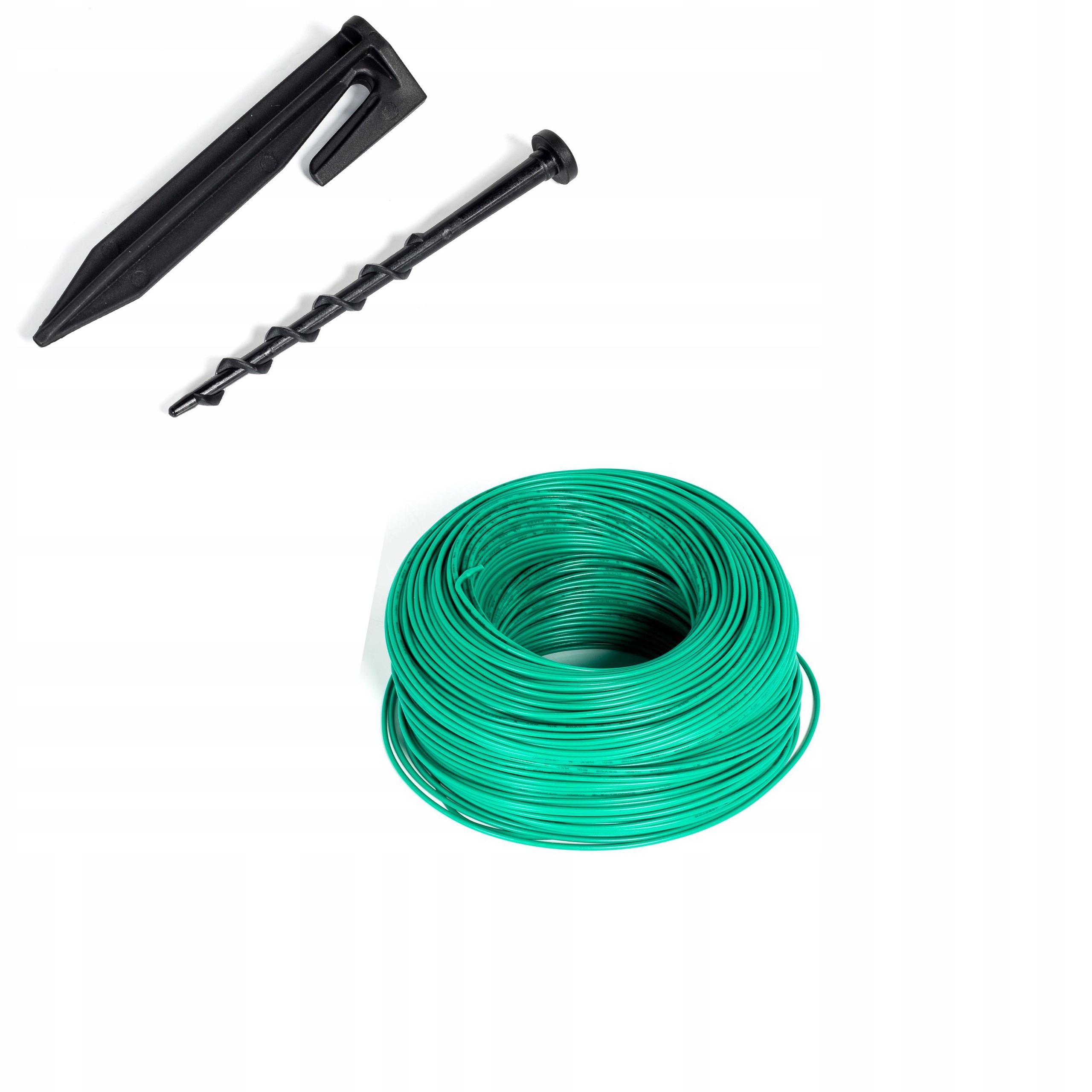 Довжину периметрального дроту, що входить до комплекту, та кількість монтажних шпильок може бути недостатньо для газонів складної форми. При підборі кількості штирів дотримуйтесь правилом один штирь на один погонний метр кабелю - у разі вигинів їх слід розташовувати щільніше. Додатковий обмежувальний дріт і шпильки для його кріплення до землі можна знайти в нашій пропозиції
