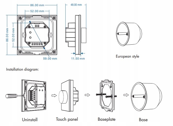 Naścienny panel obrotowy LED MONO 2.4GHz / DMX512 master T11-KB