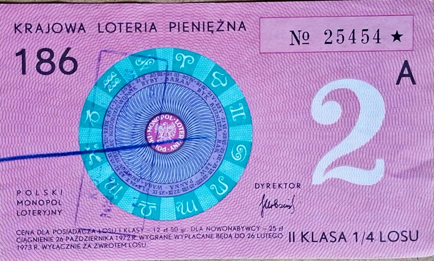НАЦІОНАЛЬНА ГРОШОВА ЛОТЕРЕЯ - 2-й КЛАС 1/4 РОЗІГРАШ 1972
