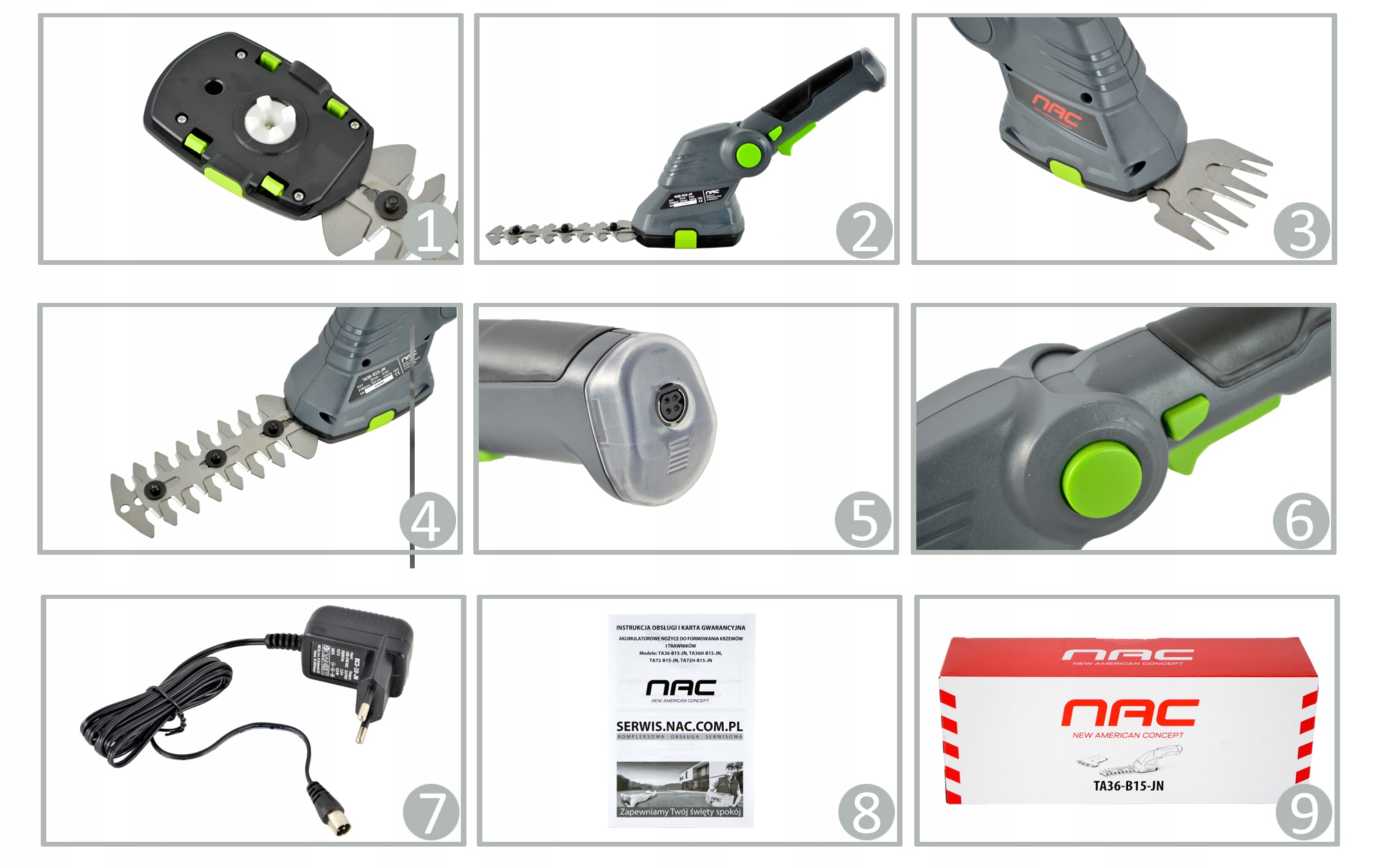 2-функціональні ножиці авторитетної компанії NAC з символом TA 36-B15-JN призначені для формування кущів та різання трави у важкодоступних місцях. трава. Система заміни лез дуже проста і не вимагає використання будь -яких інструментів.