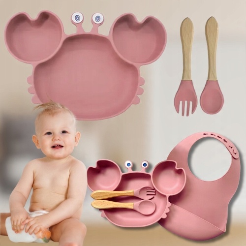 NACZYNIA SILIKONOWE DLA DZIECI NIEMOWLĄT KRAB ZESTAW STOŁOWY 9 ELEMENTÓW