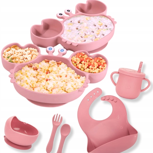 NACZYNIA SILIKONOWE DLA DZIECI NIEMOWLĄT KRAB ZESTAW STOŁOWY 9 ELEMENTÓW