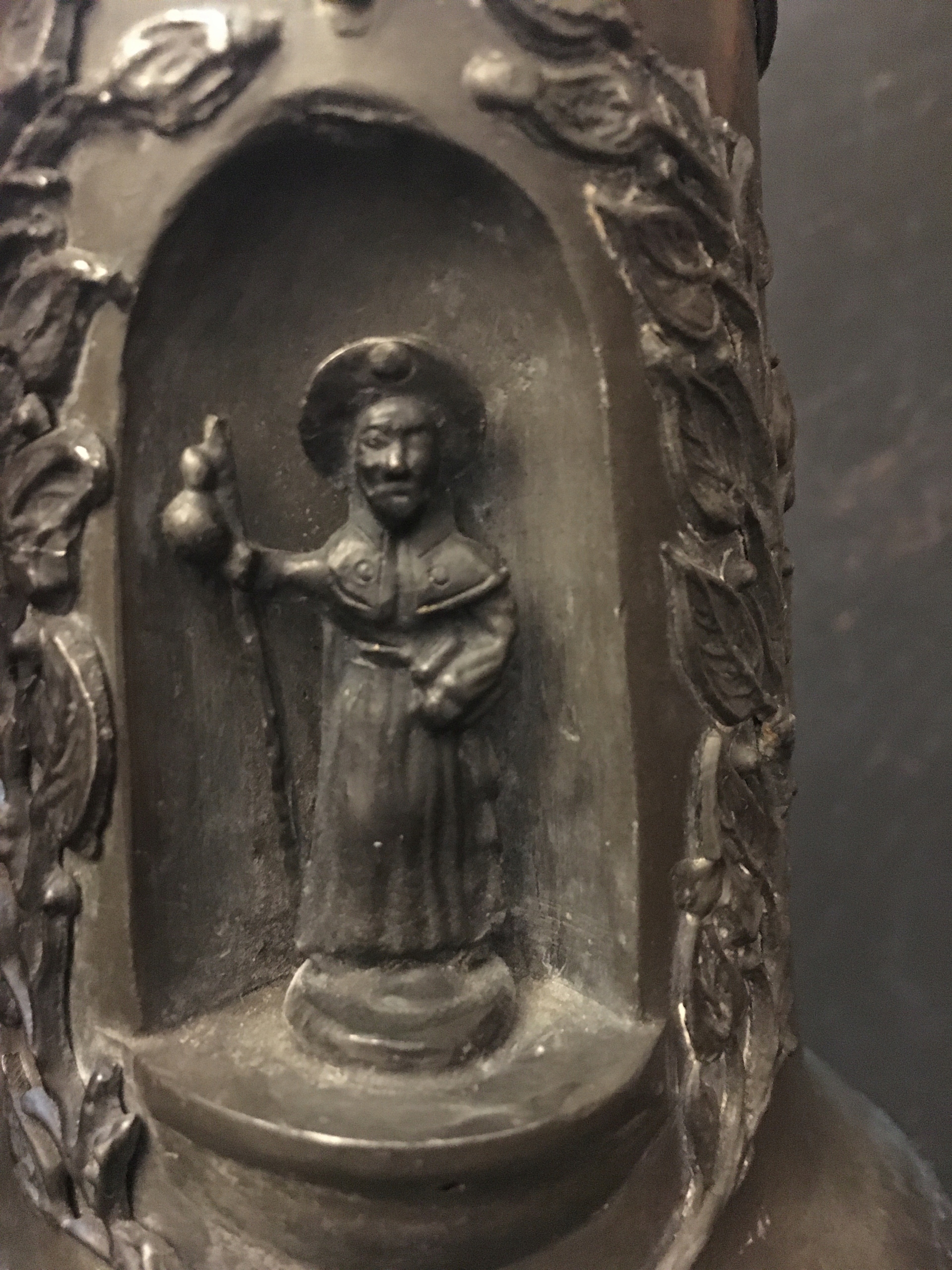 naczynie cynowe kościelne ze świętym Jakubem okres prawdopodobnie XIX wiek