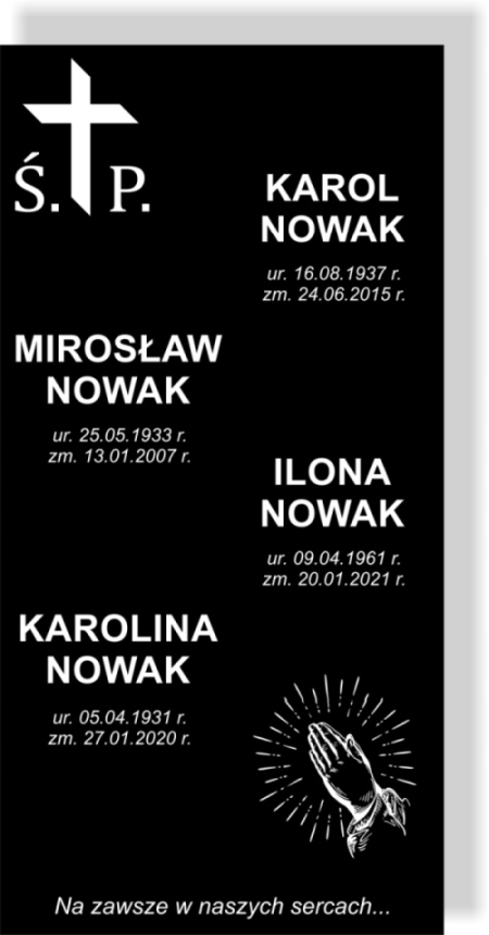 Гравірований надгробок 60х30 см - вертикальна орієнтація - індивідуальна персоналізація.