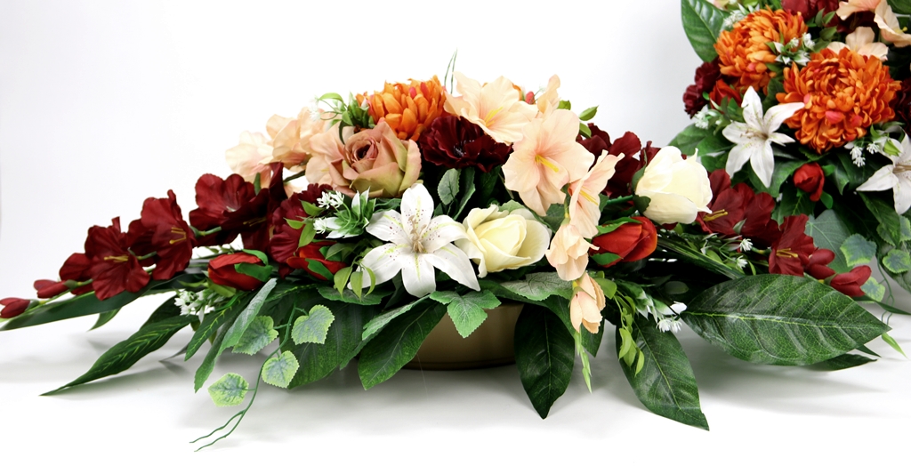 Надгробний набір ВЕЛИКИЙ Букет + букет Квіти бордовий АПЕЛЬСИН КРЕМОВИЙ
