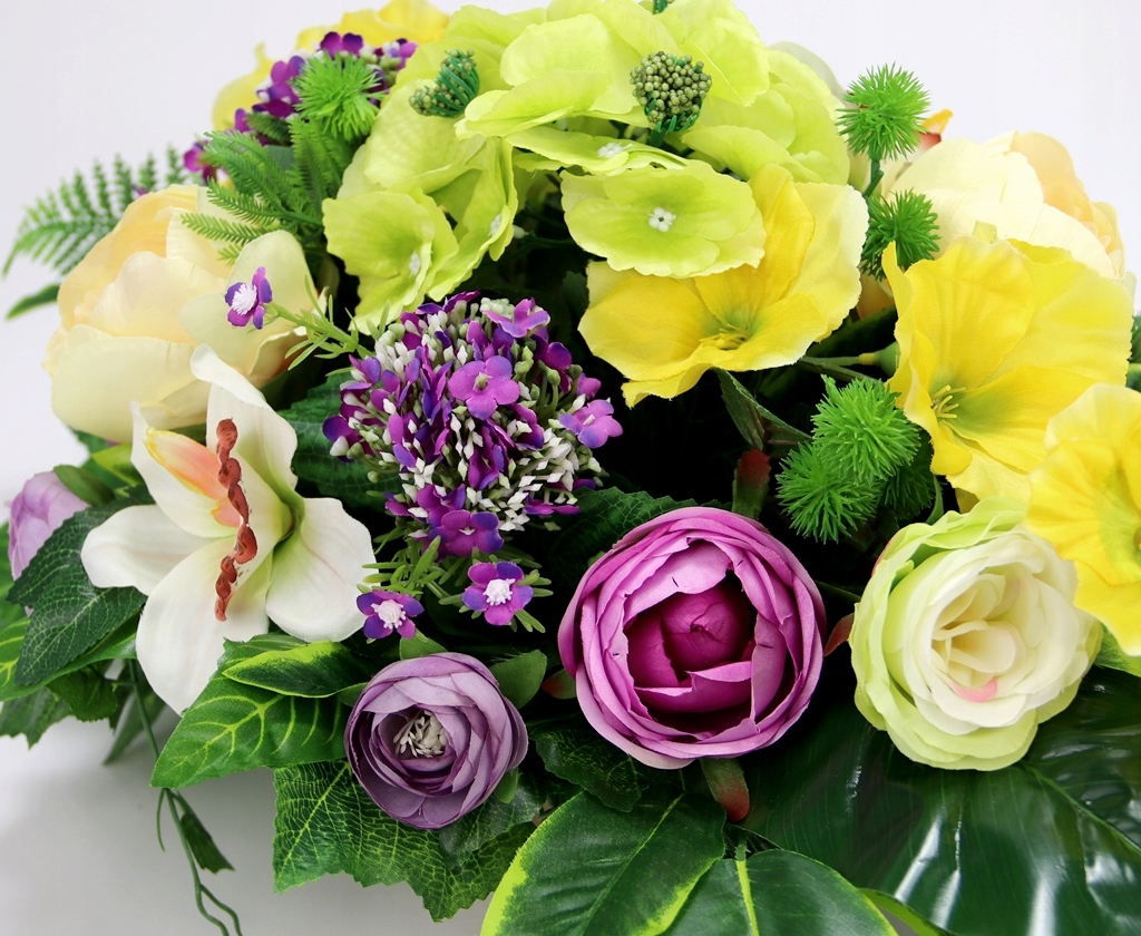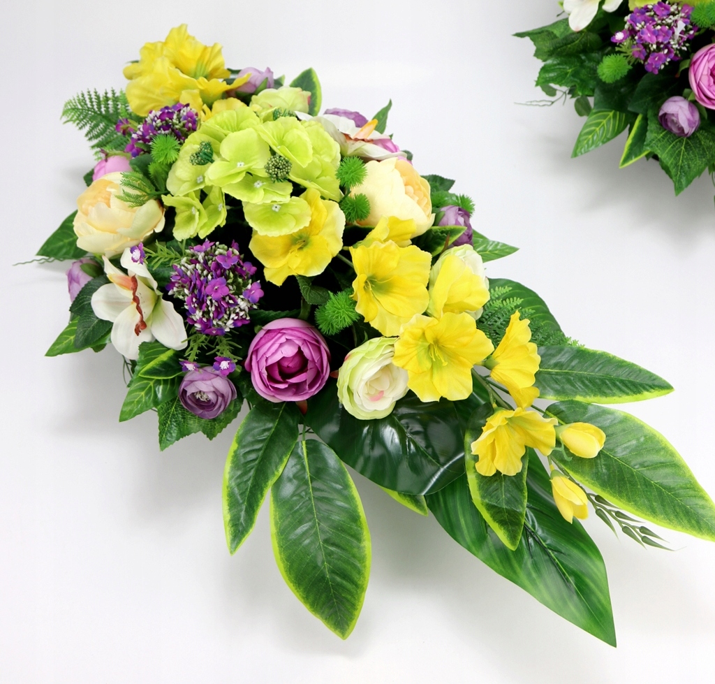 Надгробний набір ВЕЛИКИЙ Букет + букет УНІВЕРСАЛЬНИЙ епізод ФІОЛЕТОВИЙ ЖОВТО-ЗЕЛЕНИЙ