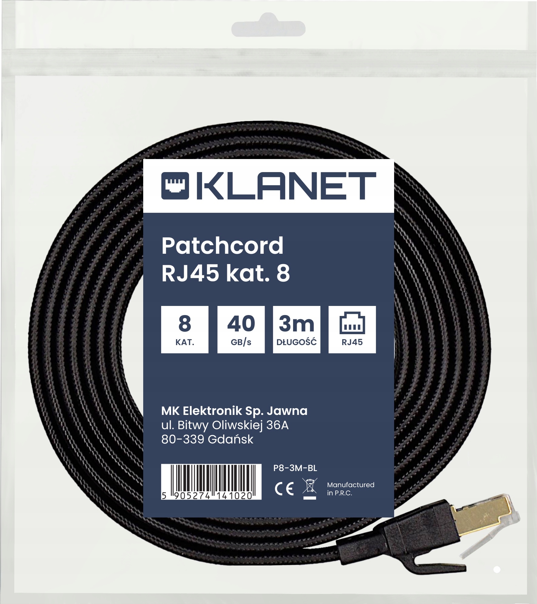 НАДІЙНИЙ ІНТЕРНЕТ-КАБЕЛЬ LAN ETHERNET 40GBS RJ45 CAT.8 3M