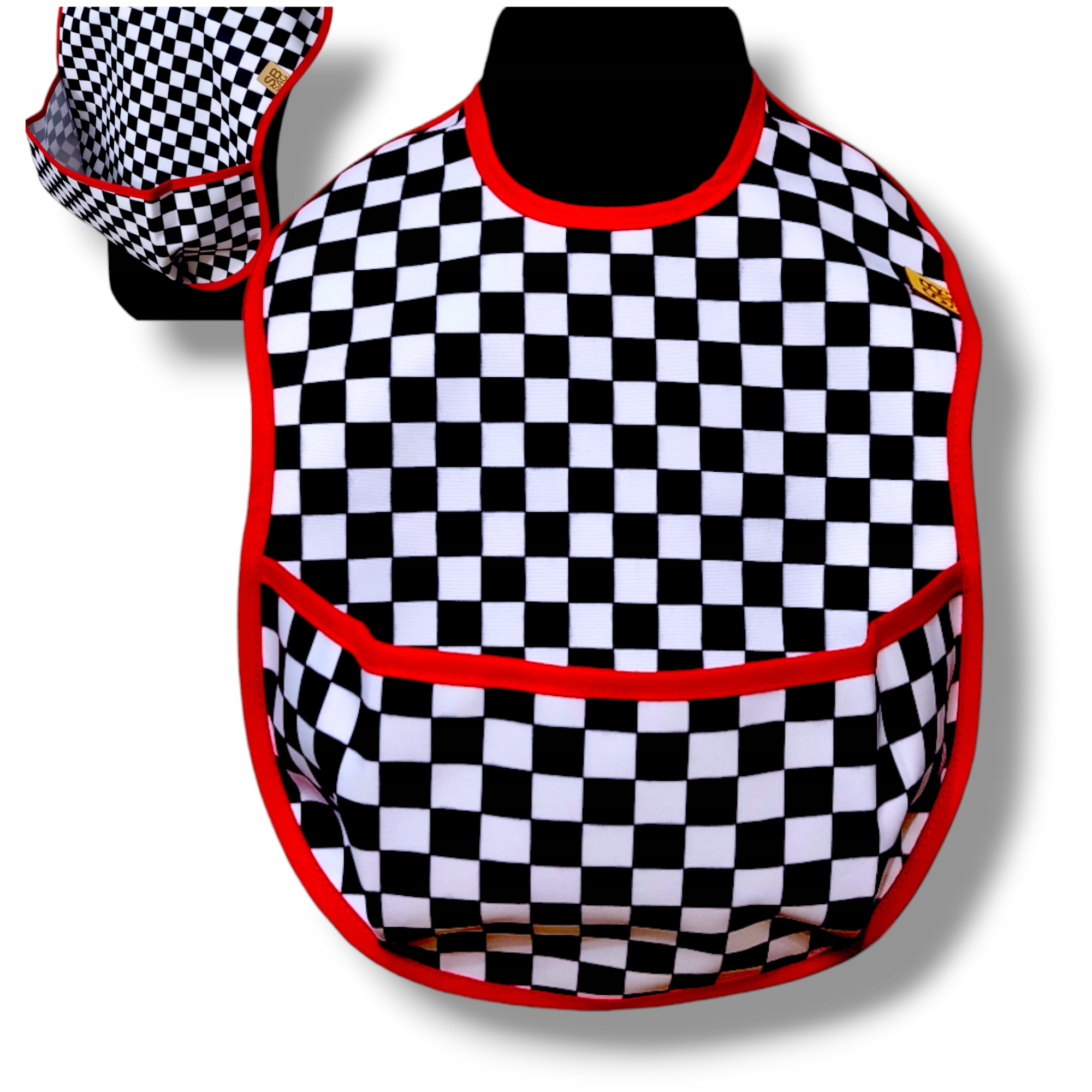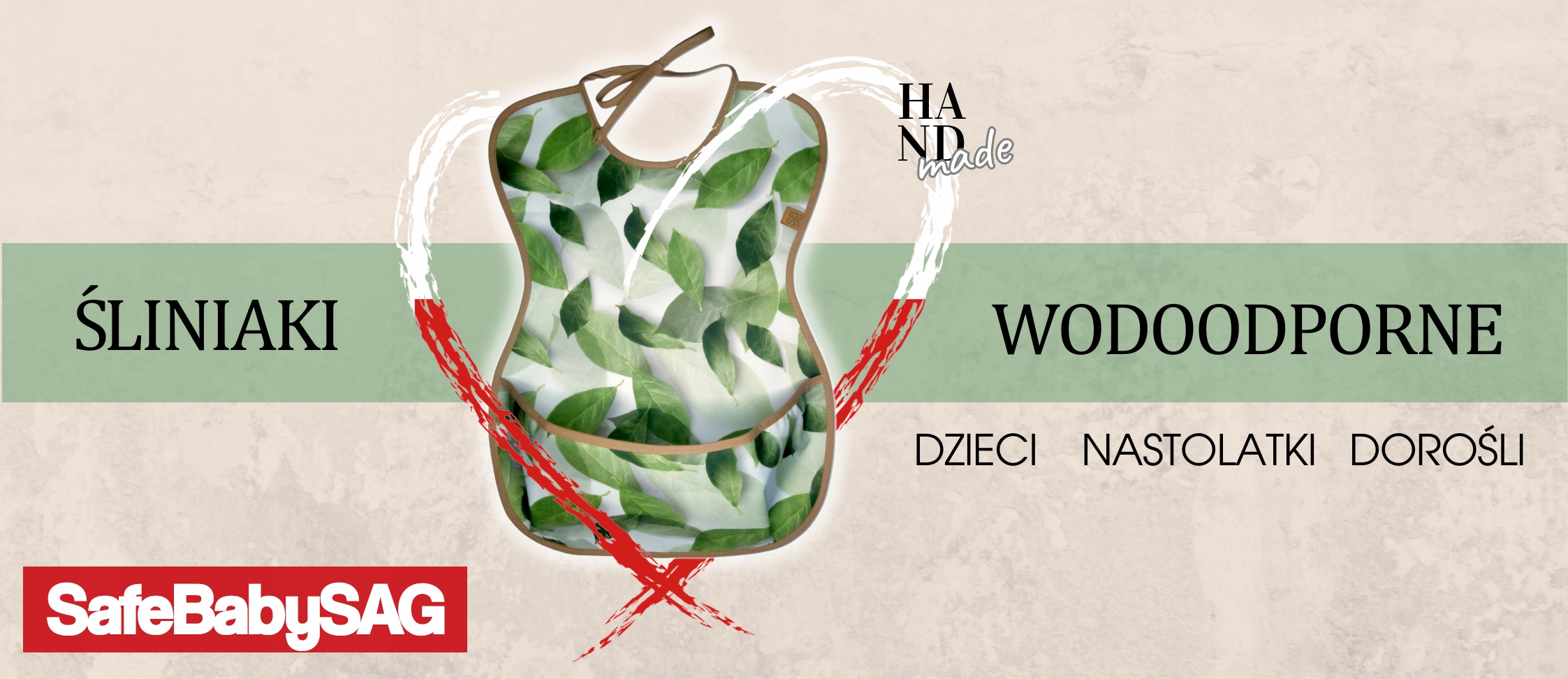 Водонепроникні нагрудники SafeBabySAG виготовлені з тканини найвищої якості, найважливішою перевагою якої є водонепроникність - як у силіконового нагрудника . Тканина м'яка - як тканинний нагрудник. Ми довго працювали над кишенею. Тести, розмови з користувачами, особистий досвід і робота з тканиною дозволили нам створити вироби з 3D навісною кишенею, яка не закривається і працює на рух користувача. Глибина кишені запобігає падінню під час нахилу. Нашу продукцію відрізняє мала вага, м'якість, легкість очищення та швидка готовність до повторного використання. Бавовняна окантовка навколо нагрудника та лямки для кріплення не подразнюють шкіру. Зав'язування є найефективнішим - швидким і виключає ризик того, що пацієнт самостійно зніме нагрудник, і дуже міцним на відміну від липучок, які швидко виготовляються і можуть дратувати, або гачки, які легко «розробляє» дитина. Крім того, зав’язка дозволяє нагруднику ідеально прилягати до шиї, щоб уникнути потрапляння бруду під нагрудник.