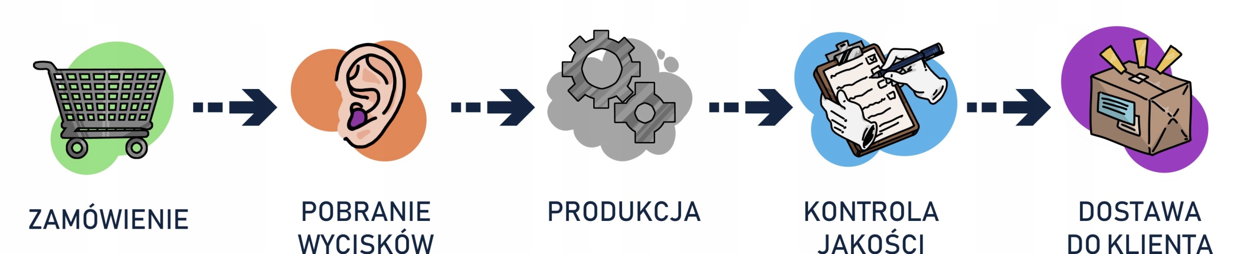 Вкладиші для навушників серії MTM (made-to-measure) виготовлені за допомогою зліпка (відбитка) слухового проходу. У нас є база даних кваліфікованих сурдологів по всій Польщі. Користувач не несе витрати на послугу кастингу, він доїжджає лише до офісу в своєму місті або, якщо в його місті немає протезиста, у найближче місто. Звертаючись до компанії NAVCOMM, вона реєструється максимально швидко, а виготовлення відбитка (зліпка) займає кілька хвилин.