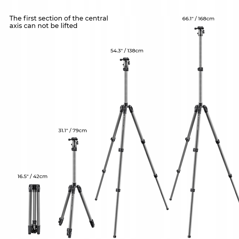 Штатив із кульовою головкою важить лише 1,1 кг і його можна скласти< b > до 42 см і легко помістити в рюкзак або валізу під час подорожі.