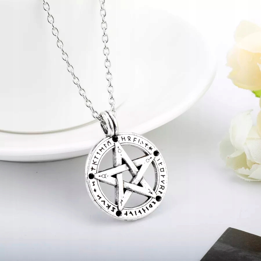 намисто з довжиною 50 см у кольорі сріблястий стародавній з підвіскою пентаграми з надприродних серій !