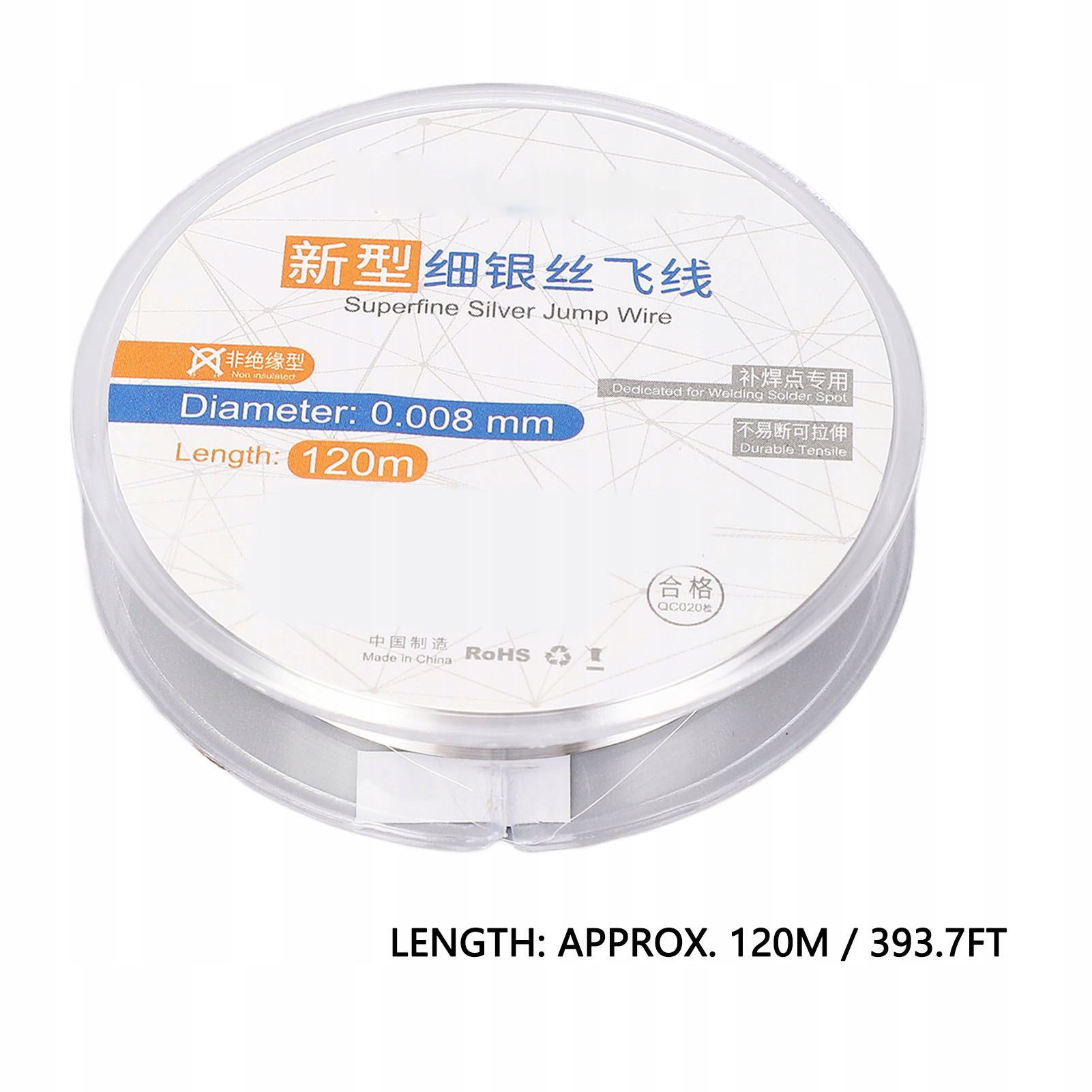 4. Параметри паяльного дроту: 0,008 мм високоякісного срібного дроту з кроком забезпечує точне з’єднання та запобігає короткому замиканню між паяними з’єднаннями. Довжина 120 метрів
