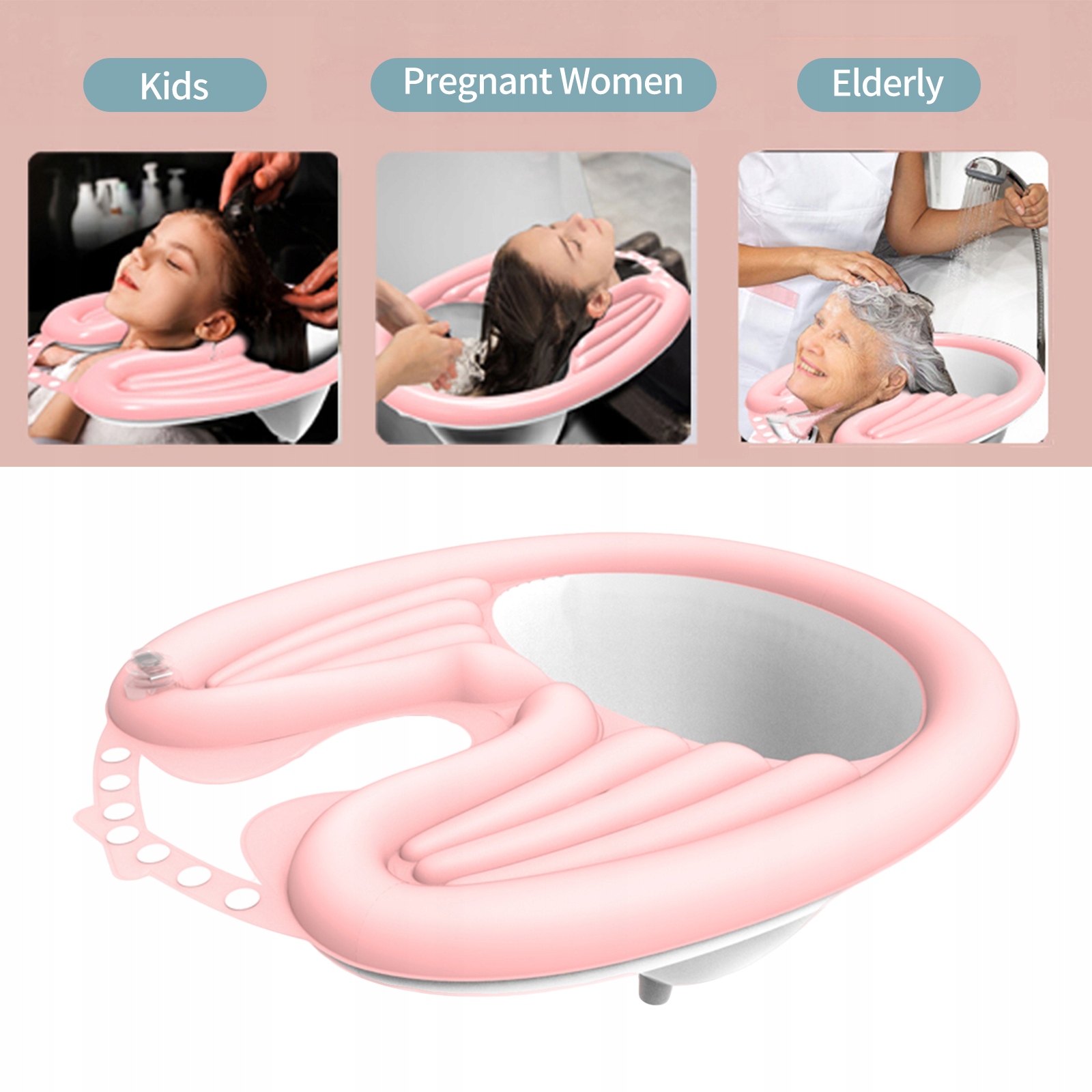 - Надувний лоток для шампуню виготовлений з матеріалу ПВХ, який простий у використанні. Портативний надувний лоток для шампуню спрощує шампунь людини, прикуту до ліжка або обмежена рухливість, що дозволяє легко та зручно волосся в ліжку.