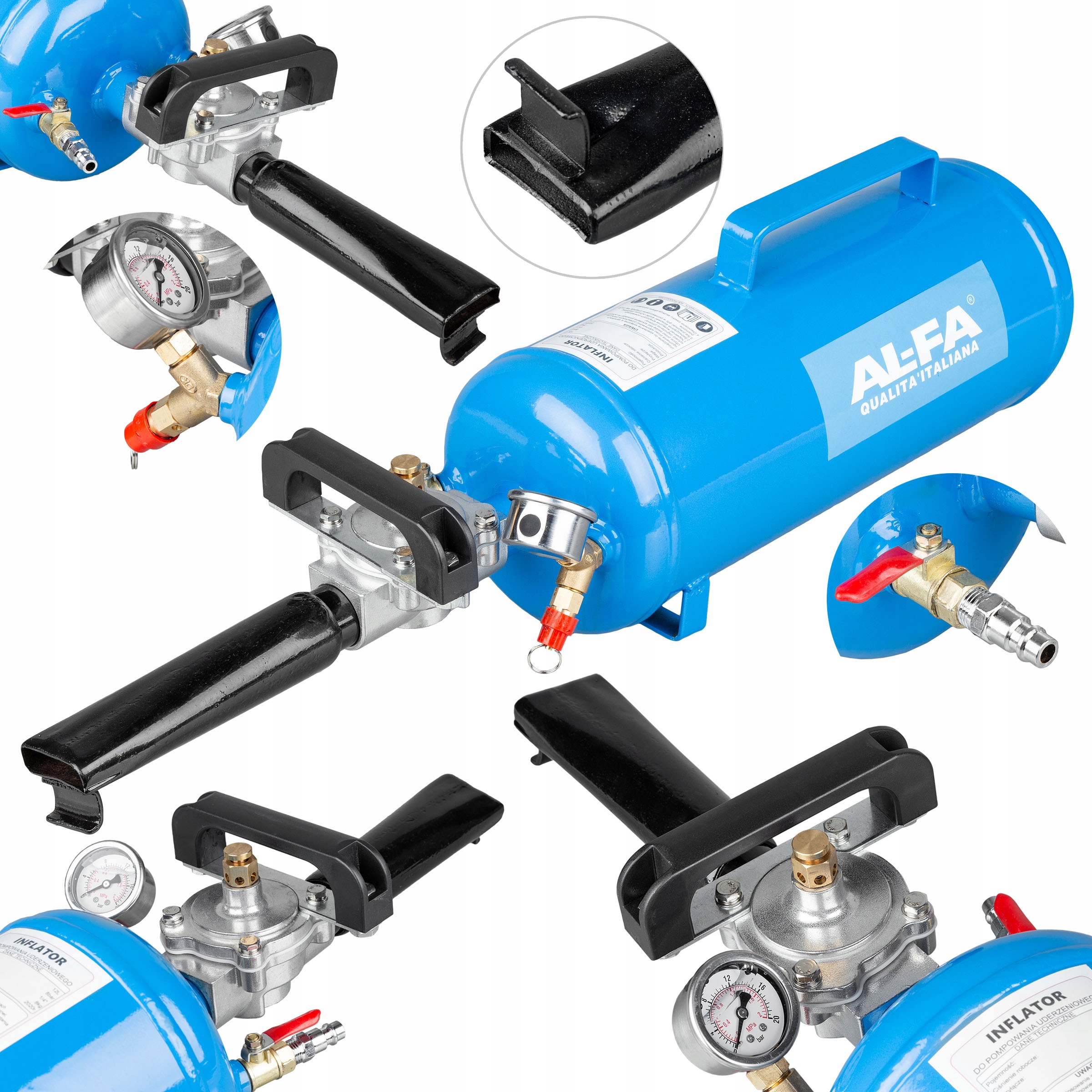 Пропонований НАДУВАЛЬНИК - ідеальне обладнання для автомайстерень і шиномонтажних заводів. Використовується для ударної накачування безкамерних шин в процесі монтажу шини на обід. Зйомка насоса ущільнює шину на ободі, щоб ми могли накачати колесо до встановленого тиску. Нагнітач можна використовувати для коліс легкових автомобілів, мікроавтобусів і вантажівок.
