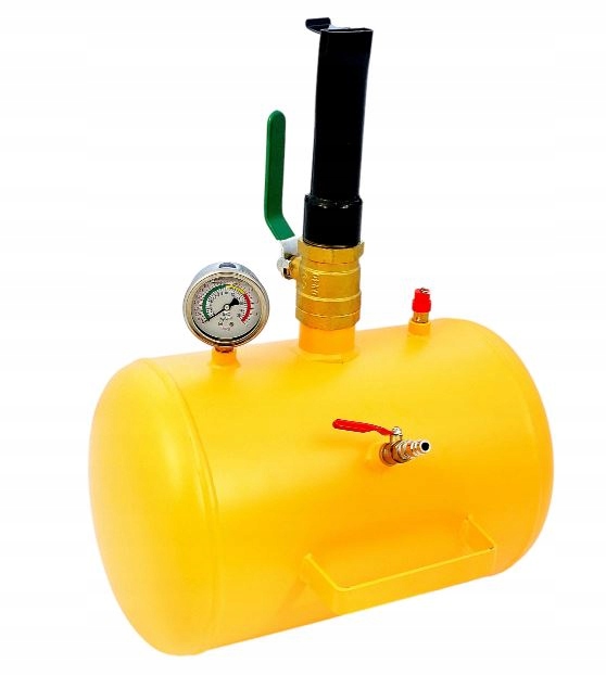 Надувний пристрій для попереднього накачування коліс має монометр, який показує тиск усередині бака, роз’єм для наповнення бака та два випуски. Використовується для легкових, вантажних, сільськогосподарських, мотоциклетних і будівельних шин. Технічні дані: об'єм бака 19 [л] максимальний тиск 10 [бар] вага 11 [кг] робоча температура -20oC +40oC