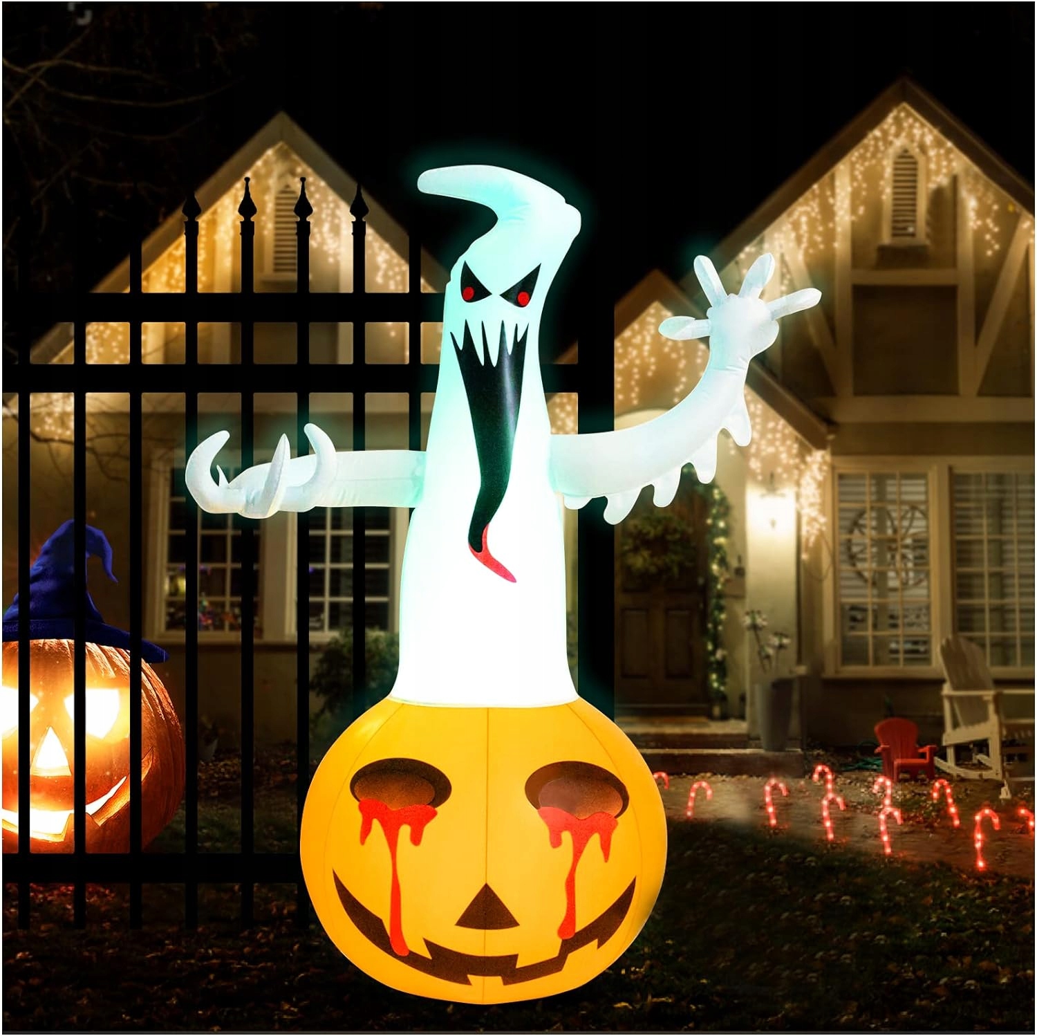 🎃 Ідеальна прикраса на Хеллоуїн: відсвяткуйте свято з надувною гарбузською відьмою на Хеллоуїн. 1,2-метровий привид створює жахливу атмосферу. Завжди готовий налякати і радувати сусідам та гостям. Принесіть примарні цукерки на вечірку чи цукерки чи трюк!