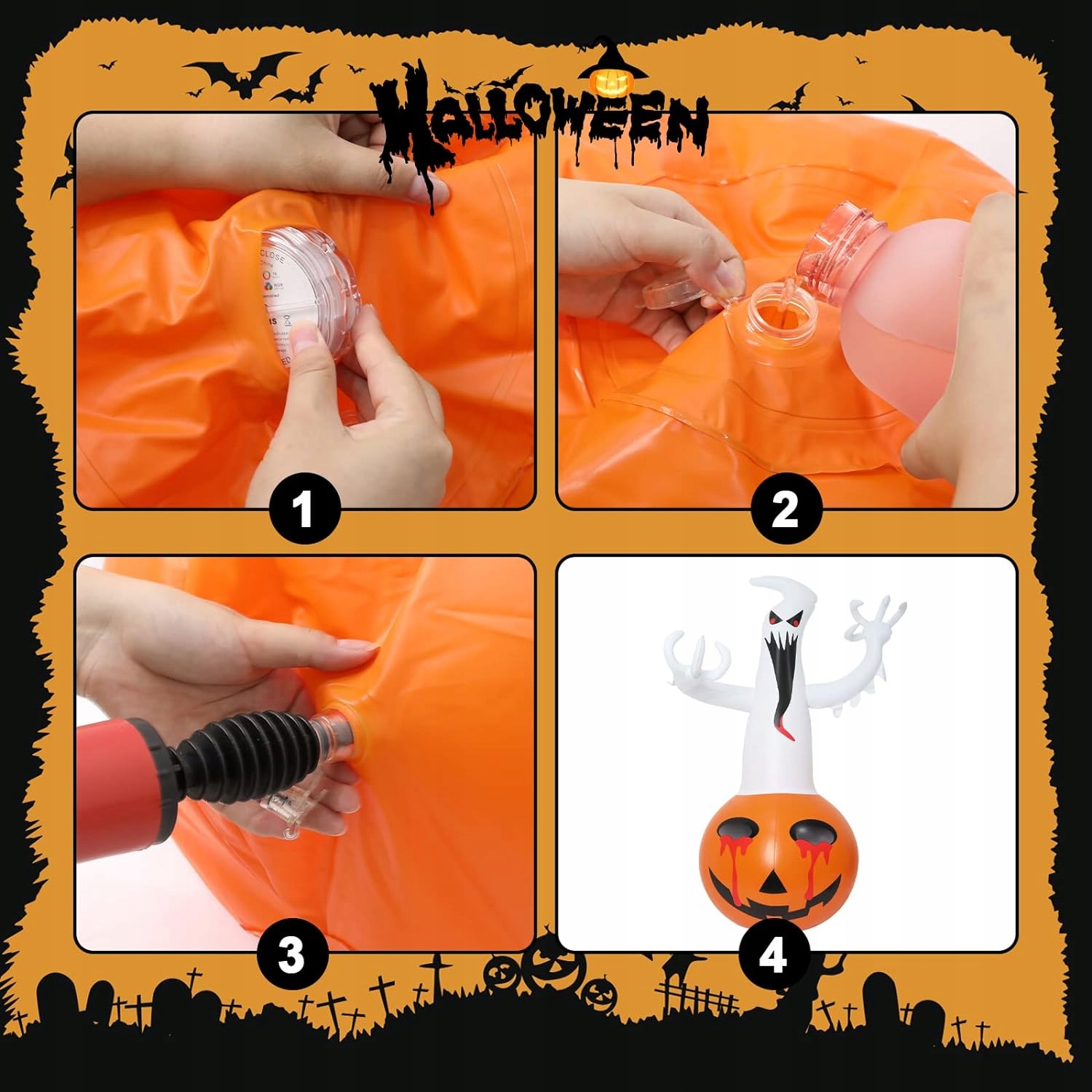🎃 Простий у використанні: анімований гарбуз Дух надутий і його можна розмістити в будь -якому місці. Легко стікати та зберігати, він не потребує великого місця, і його можна скласти та відкладати наступного разу, коли він не буде використаний.