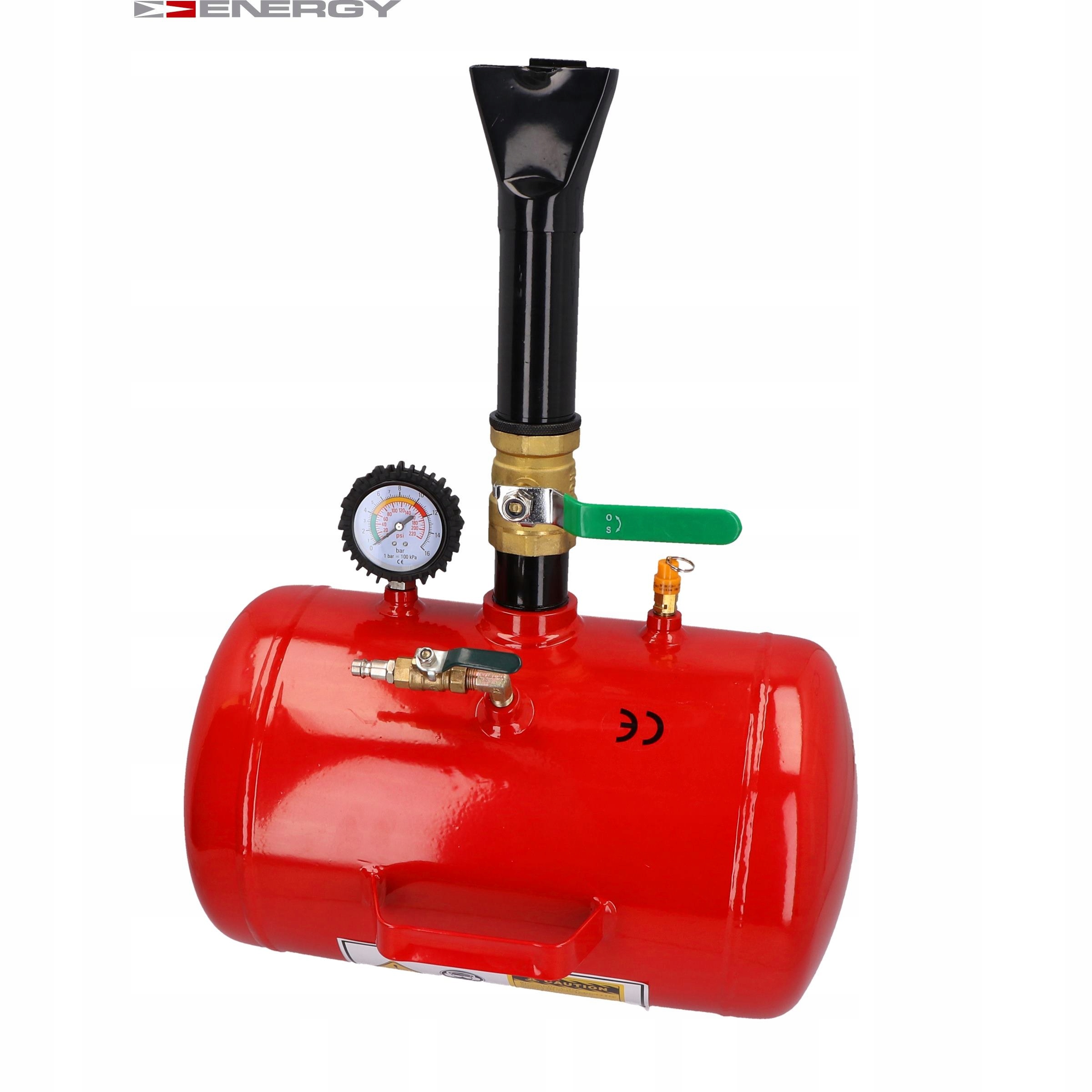 Технічні дані: - Об'єм резервуара: 20 л - Товщина стінки: 3,2 мм - Максимальний тиск: 10 бар - Робочий тиск: 6 бар - Вага нетто: 11,5 кг - Розміри продукту: довжина 430 мм, діаметр 255мм Високоякісні елементи: - патрубок для випуску повітря - запобіжний клапан - кульовий кран - манометр гліцерин, ударостійкий. Інфлятор - це пристрій, призначений для встановлення шини на обід. У той же час шина частково накачується при попаданні повітря.