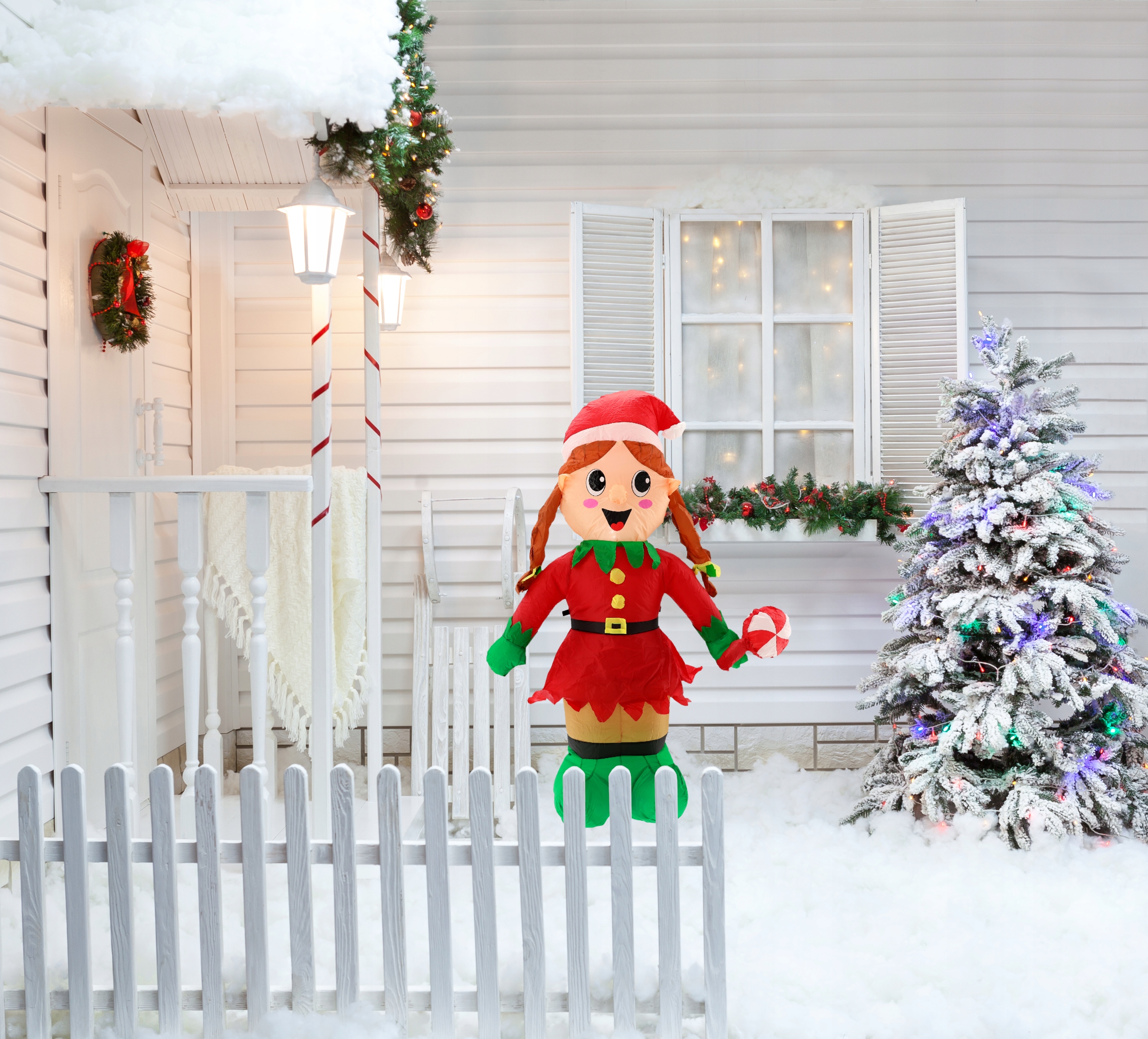 Освітіть свої свята унікальною прикрасою - Надувна Дівчина-ельф зі світлодіодним освітленням! Цей чарівний ельф заввишки 150 см стане незамінним елементом вашого новорічного декору, як вдома, так і в саду.