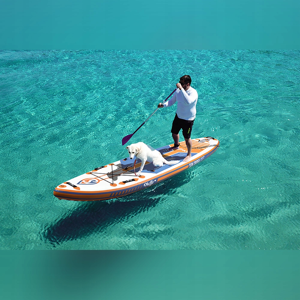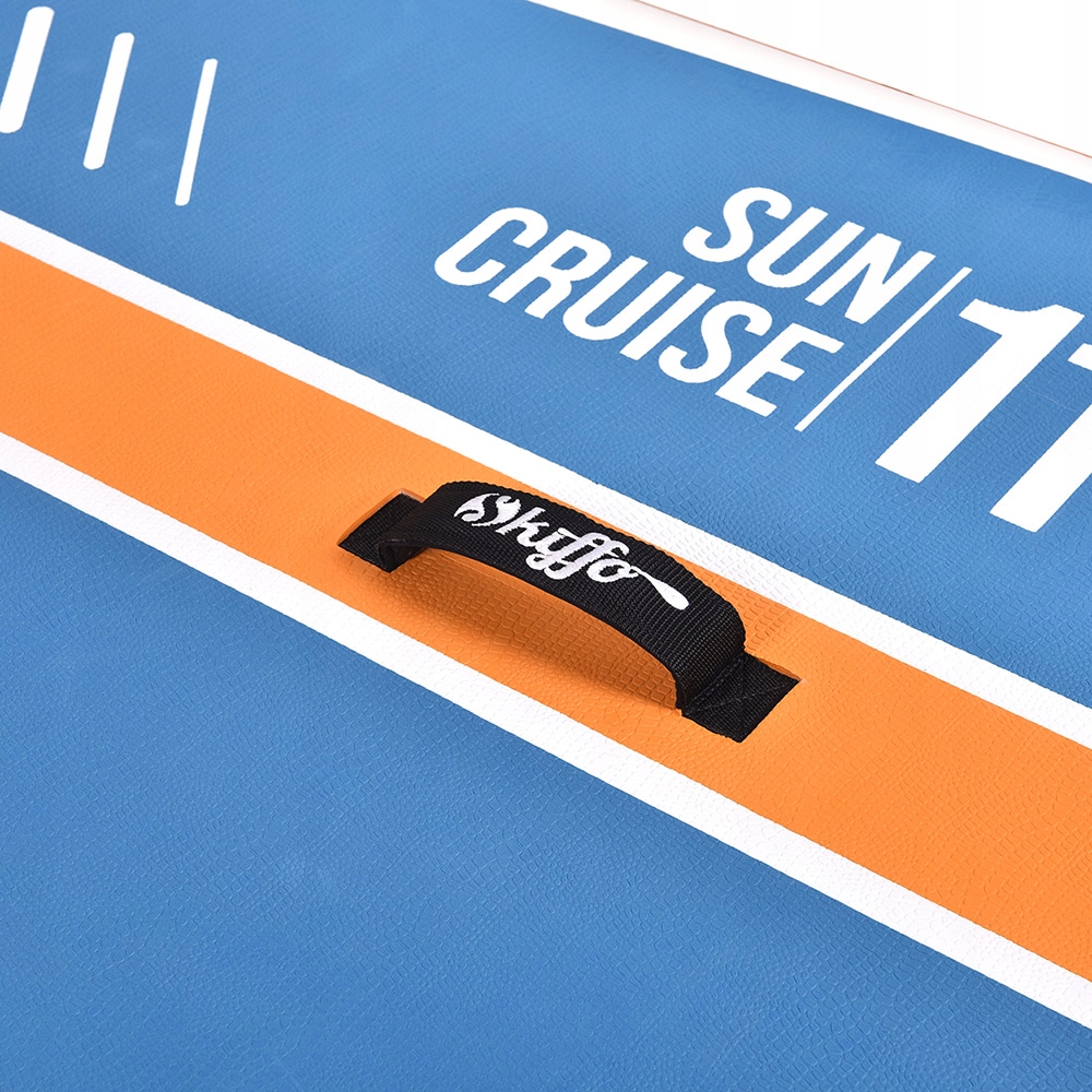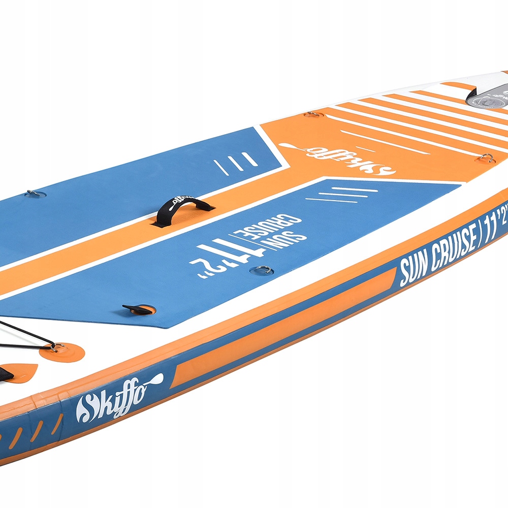 SUP дошка Skiffo Sun Cruise 11.2 з нової колекції 2021 року - це цікава, дуже жорстка дошка, стійка та маневрена, дошка для загального використання, має спеціальну опору для ніг - зручна для плавання сидячи на каяку Версія XL характеризується дуже високою плавучістю та максимальною вагою користувача до 145 кг, тому ми можемо плавати на дошці з нашим напарником або нашим. Чотири ручки для транспортування полегшують перенесення та плавання на хвилі. SUN CRUISE 11.2 – це сімейна дошка. дуже універсальний, стійкий і маневрений на каяку.