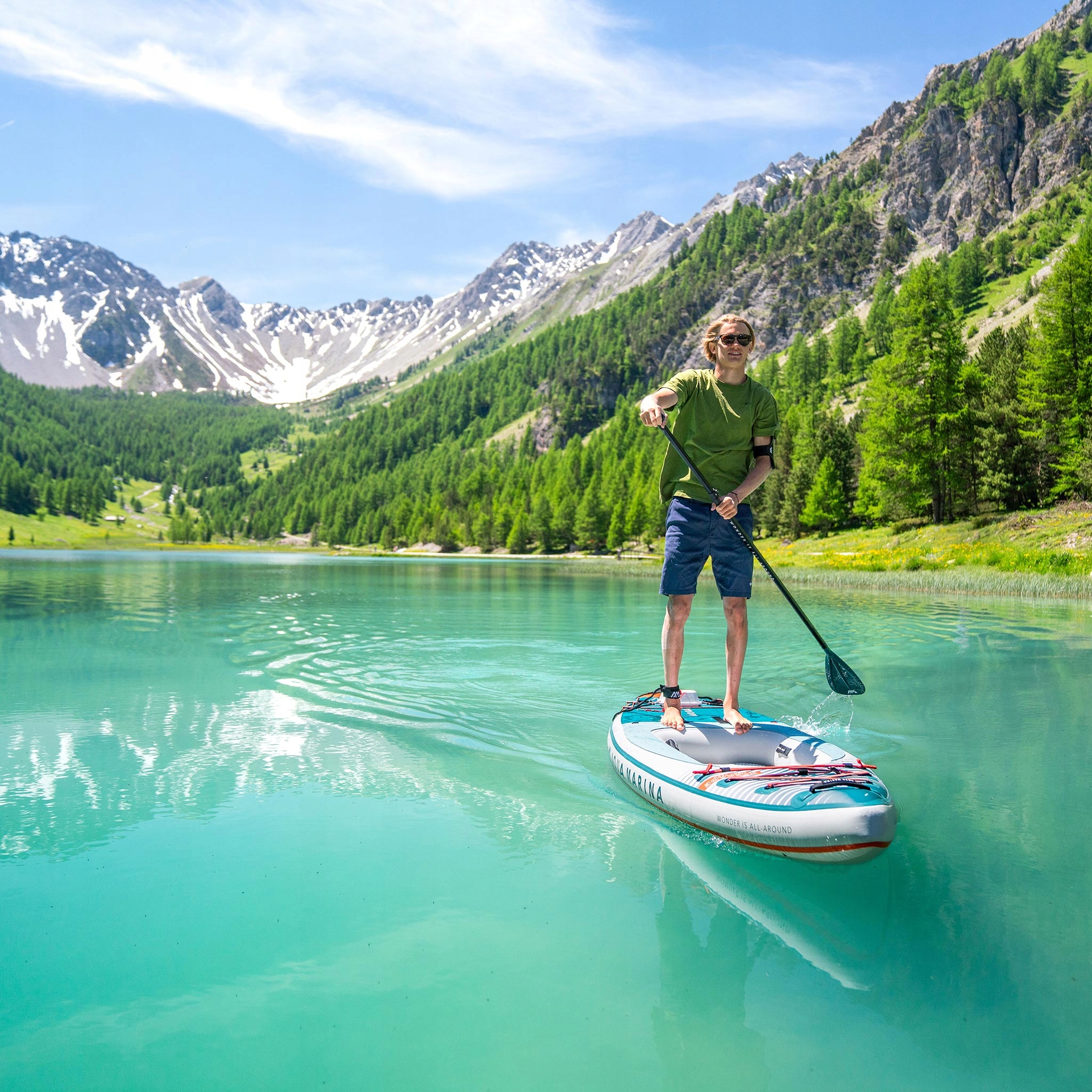 Набір включає новітнє: сумка CIRCUPACK™, повністю виготовлена з перероблених матеріалів, алюмінієве весло, яке можна використовувати як стоячи (з одним лезом), так і сидячи (з двома лезами). ), двоходовий насос з манометром, стабілізаторами та страхувальним тросом.