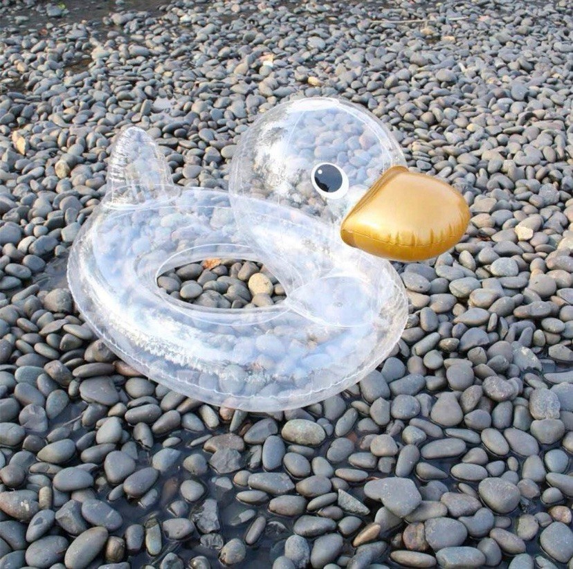 У цьому сезоні панує аксесуари для плавання з оригінальним дизайном - і прозорого колеса з качкою - одна з найчастіше підібраних моделей батьками та дітьми. Це чудово виглядає на знімках і привертає увагу на пляжі чи біля басейну.