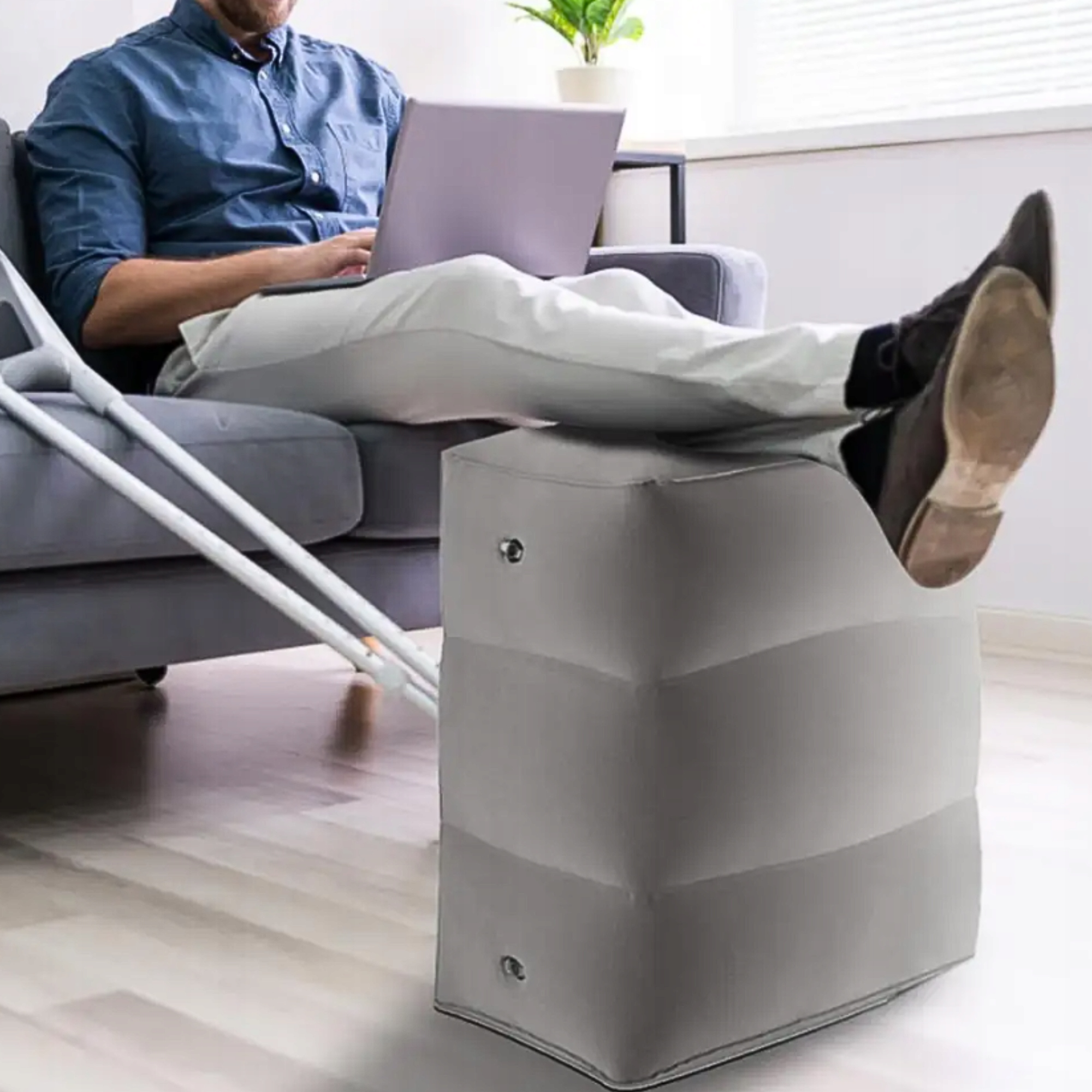 Відпочиньте, як ніколи раніше, з нашою надувною підставкою для ніг! Цей інноваційний продукт розроблено з урахуванням вашого комфорту та універсальності. Незалежно від того, чи відпочиваєте ви вдома, працюєте в офісі, подорожуєте поїздом чи літаком, чи в кемпінгу, наша надувна підставка для ніг стане для вас найкращою компаньйон.