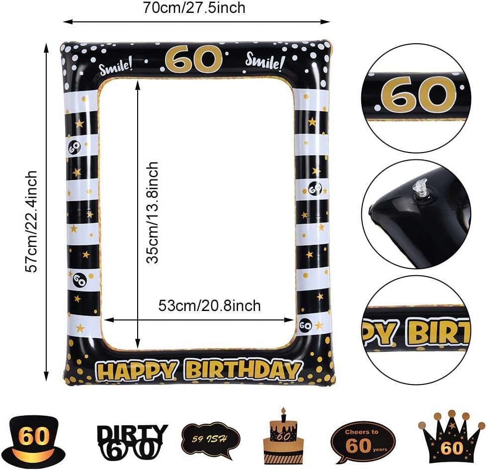 ✅Надувна рамка до 60-річчя Flintronic, реквізит для фотокабінки, чорний і золотий, вечірка до дня народження, надувна фоторамка, веселий набір реквізитів для селфі, декор для вечірки