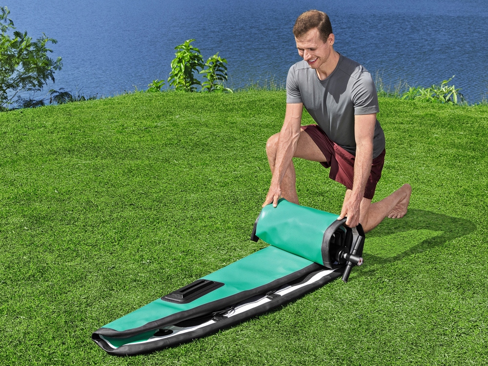 Легке збирання та зберігання:Збірка дошки — це нескладна справа — просто надуйте її за допомогою ручного насоса, який входить у комплект, і ви готово! Коли ваша пригода закінчиться, просто використовуйте повітряний клапан, щоб швидко спорожнити його. Завдяки дизайну TravelTech™ дошку надзвичайно легко складати та зберігати. У складеному вигляді поміщається в рюкзак, що входить в комплект. У набір також входить регульоване весло, поводок і ремонтний набір - все, що вам потрібно, щоб насолоджуватися безтурботними пригодами на воді, де б ви не були.