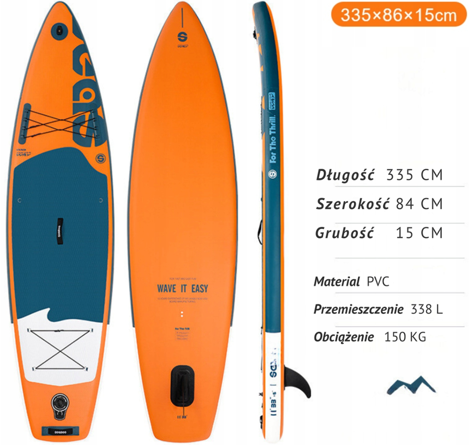 ▶️ Довжина 335 см і ширина 86 см - забезпечують стабільність і комфорт під час плавання.