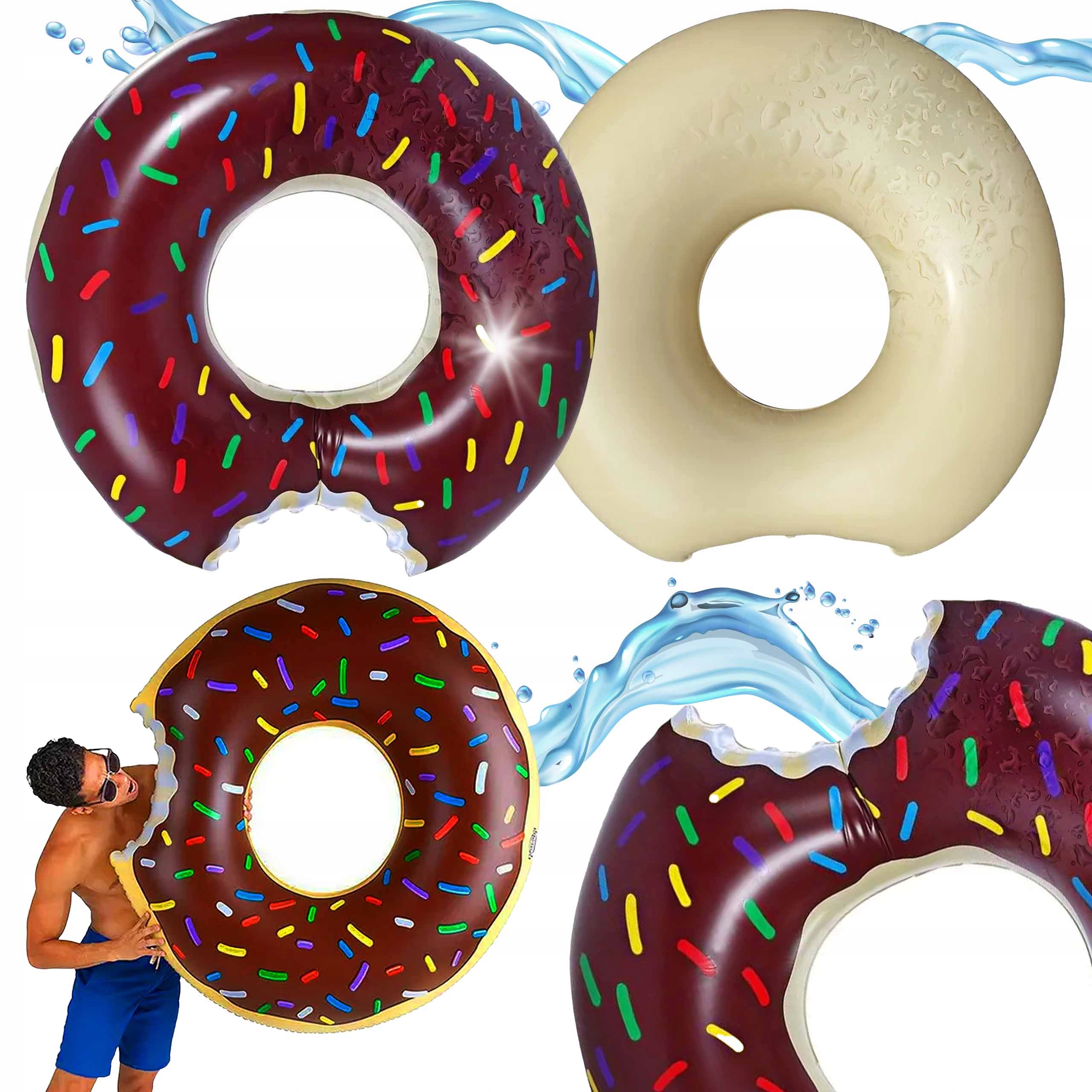 Насолоджуйтеся літніми розвагами у воді з нашим великим надувним кільцем для басейну у формі смачного пончика! Це колесо — ідеальний спосіб додати трохи солодкості будь-якій водній пригоді, одночасно забезпечуючи комфорт і безпеку використання.
