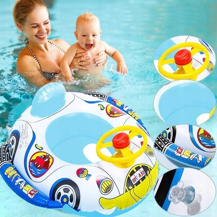 Це унікальне колесо має зручне сидіння, яке полегшує розміщення дитини в кріслі. понтоні обертове кермо зі звуковим сигналом, завдяки якому водій почуватиметься, ніби він/вона перебуває за керуванням справжнього автомобіля. Яскраві та насичені кольори виробу та блискучий дизайн дозволять вам легко спостерігати за своїм малюком під час гри у воді.