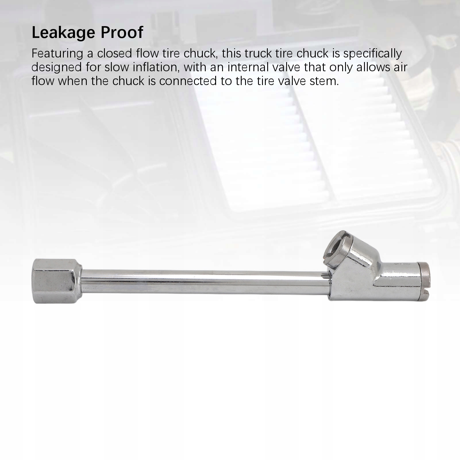 2. Захист від протікання: цей закритий тримач шини спеціально розроблений для повільного накачування з внутрішнім клапаном, який пропускає повітря лише тоді, коли тримач під’єднано до штока клапана шини.